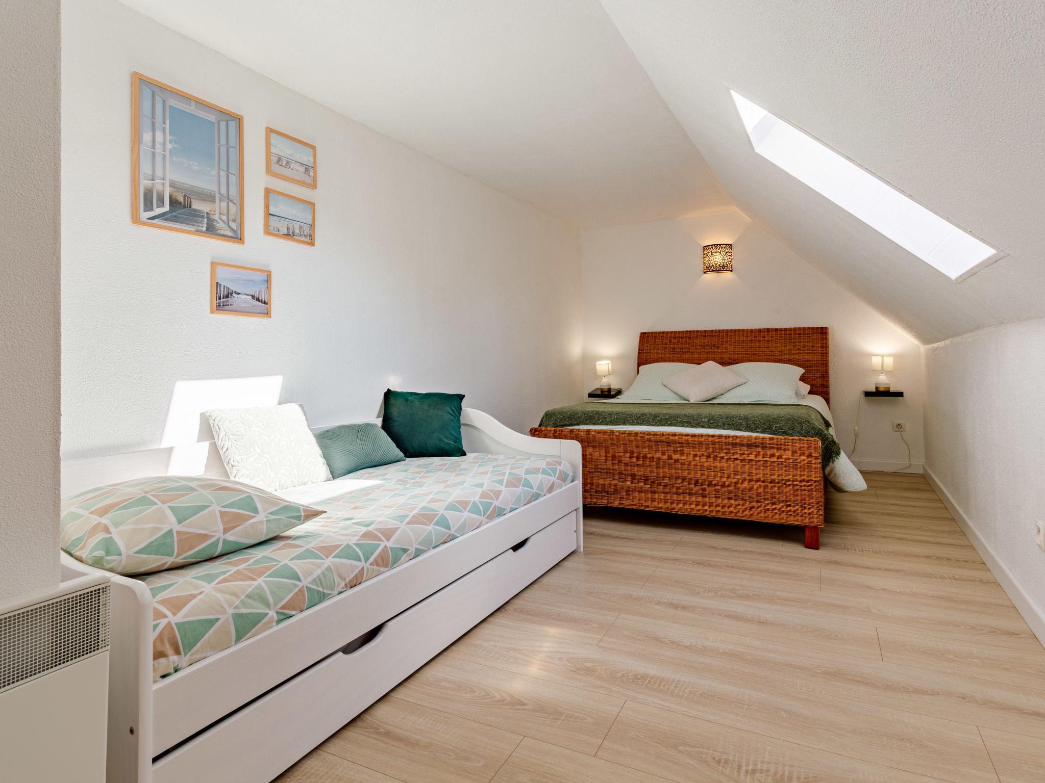 "La salicorne", 3-room terraced house 66 m2 on 2 levels. Comfortable and tasteful furnishings: living room with TV. Kitchenette (oven, dishwasher, 4 gas rings, toaster, kettle, microwave, electric coffee machine) with electric heating. Shower/WC. Upper floor: 1 room with 1 french bed (1 x 140 cm, length 190 cm). 1 room with 1 bed (90 cm, length 190 cm), 1 french bed (1 x 140 cm, length 190 cm). Parquet floors. Barbecue, deck chairs. Facilities: iron. Parking (2 cars) at the house. Please note: 1 small pet/ dog allowed. Smoke alarm. Offer by a private individual according to Art. 155, IV of CGI.