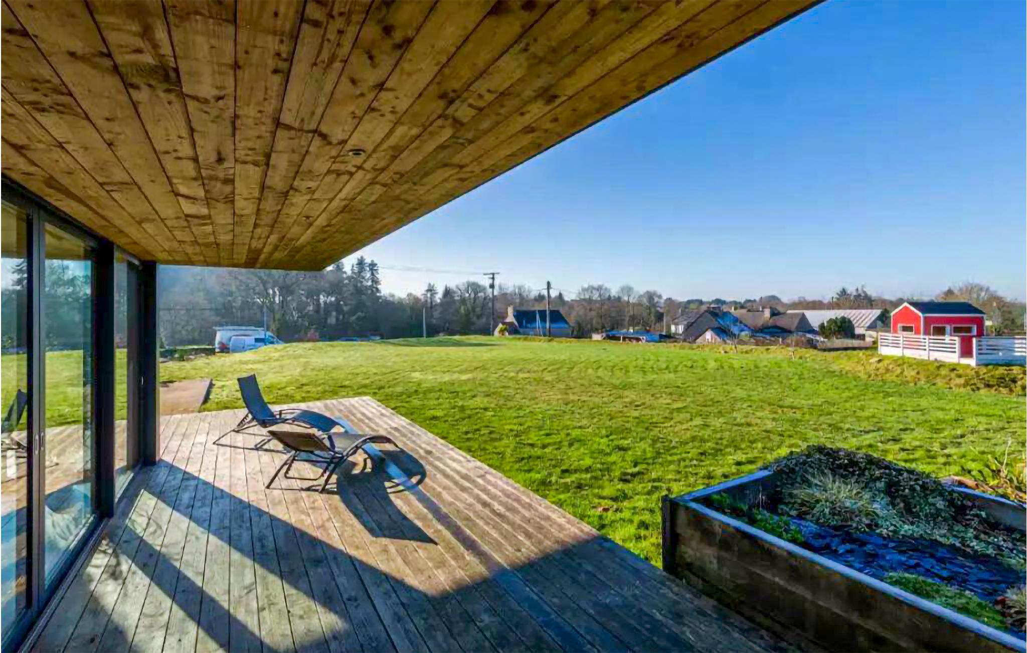 Huset er arkitekttegnet og passer perfekt ind i det maleriske landskab på Smaragdkysten. I kan se frem til en smagfuld indretning i velvalgte farver, så her får I de bedste rammer til at slappe af. Glæd jer til at læne jer tilbage i den brede sofa med fantastisk udsigt til haven. Om aftenen sørger brændeovnen for hyggelig varme og en rar atmosfære.