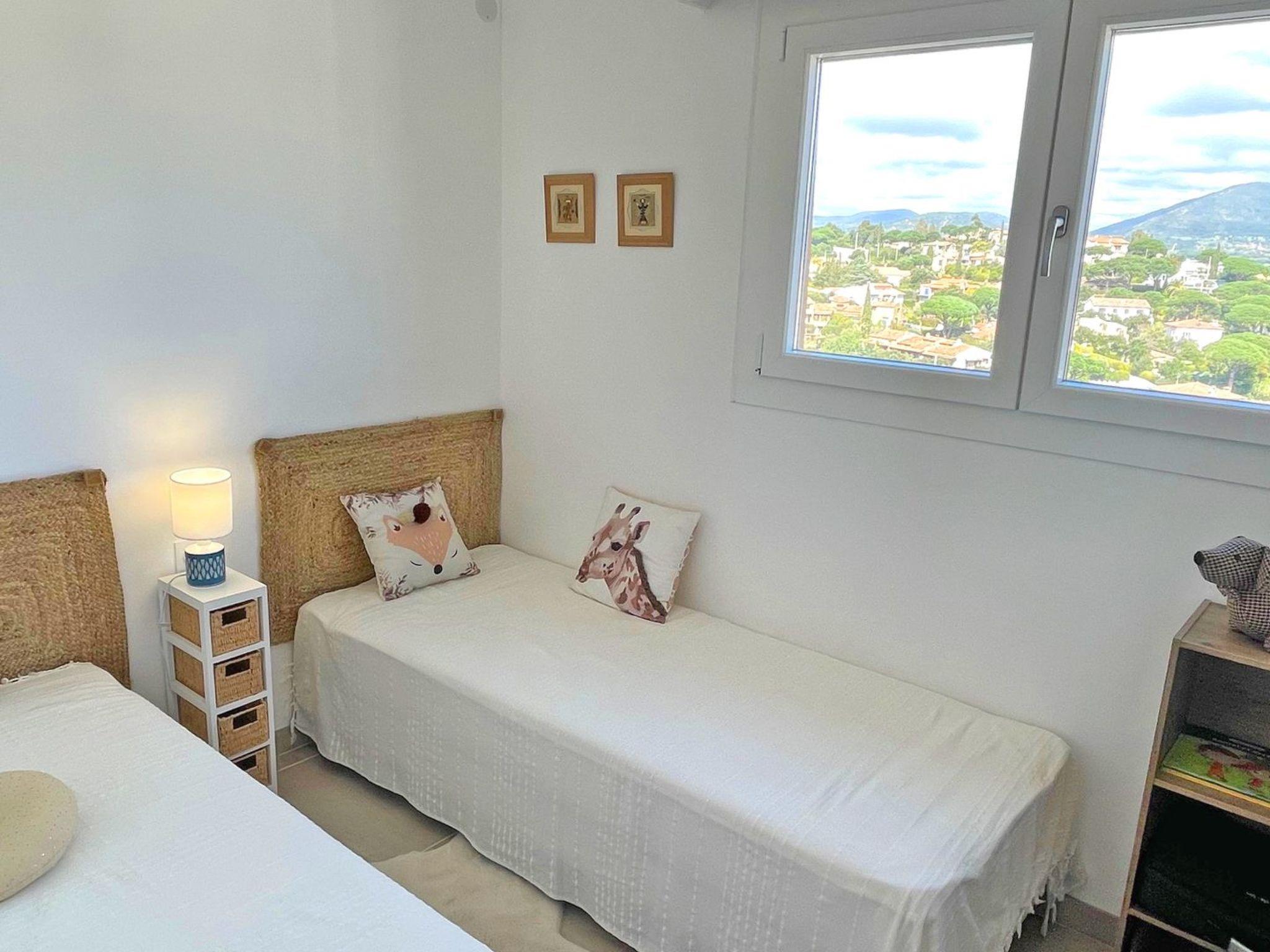3-room flat 50 m² - Residence Les Côteaux du Préconil7th floor with lift - sleeps up to 4Magnificent renovated 2-bedroom flat, located in a residence with swimming pools and tennis court, a few steps from the shops and just 10-15 minutes' walk from the town centre and beach. Enjoy sea views from the living room and terrace. Perfect for a family holiday.Unclassified accommodation or awaiting classification*.- Entrance with plenty of storage space- Main room with lounge: sofa, flat-screen TV and open-plan kitchen with dining area: fridge, oven, microwave, 4-burner induction hob, Nespresso coffee machine, etc. Access to terrace and sea view- Air-conditioned bedroom 1: 140cm bed with storage space- Air-conditioned bedroom 2: 2x80 or 160 beds with storage and washing machine in wardrobe- Bathroom with double washbasin unit, walk-in shower, storage and heated towel rail- Separate WC- Beautiful terrace with dining furniture, electric grill and sea viewOther facilities- Free on-site parking subject to availability (around thirty visitor spaces in the residence)- 25m communal swimming pool, closed from October to May- Tennis court in the residence- Air conditioning in rooms- Pocket WiFi- Sea view- Pets not allowedDistances:- Town centre: 900m- Beach: 800m- Shops: 300mReception and key collection times:Monday to Friday between 3pm and 6pm maximum.Saturdays (July - August) between 4pm and 6pm maximum.Sundays and public holidays (except Saturdays): independent arrival from 3pm (key box, details given after booking).If you wish to arrive outside these times, please enquire before booking.Not included (compulsory) :- Security deposit- Tourist taxServices included :- Disposable mattress and pillow protectors- Kitchen towels- Bathroom matsHouse rules :- No parties or festive events- No smoking inside