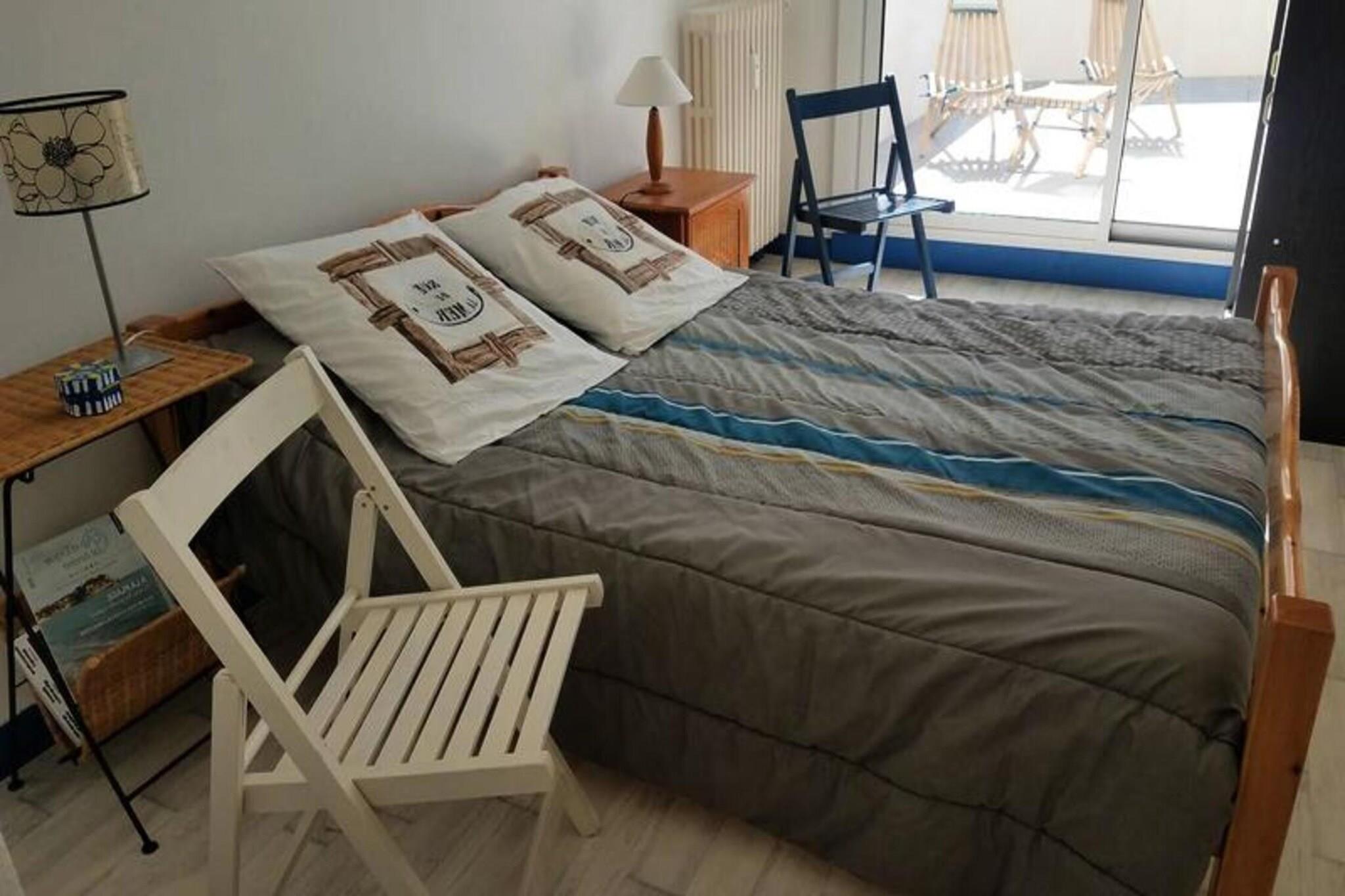 Denne rummelige T3 lejlighed på 65m² tilbyder komfortabel indkvartering med havudsigt fra den 30m² store terrasse. Den har to soveværelser: et med dobbeltseng (140x190 cm) og direkte adgang til terrassen, og det andet med to enkeltkøjesenge og en enkeltseng. I stuen er der en sovesofa til to personer, et tv og et spisebord til seks. Lejligheden kan rumme op til syv personer og er ikke kæledyrsvenlig. For ekstra bekvemmelighed er der privat parkering i kælderen. Beliggende på et førsteklasses sted med direkte adgang til en stor strand, er denne lejlighed i gåafstand til butikker, spa, marina, kasino og biograf. Den sydlige eksponering sikrer solrige dage, og du vil være i stand til at nyde en række nærliggende attraktioner, caféer og lokale markeder for en dejlig oplevelse. Lejligheden er udstyret med et fuldt uafhængigt køkken, herunder en mikrobølgeovn, induktionskomfur, ovn, køleskab, opvaskemaskine og andre vigtige apparater. Badeværelset har bruseniche og håndvask, og der er separat toilet. Terrassen byder på udendørs siddepladser med bord, lænestole, liggestole og en markise til skygge. Valgfrie tjenester inkluderer leje af sengetøj, babyseng og Wi-Fi.