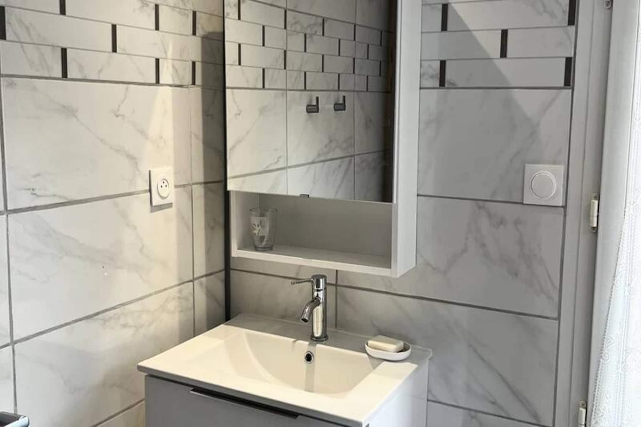 Et charmerende kystnært tilflugtssted venter dig i hjertet af Val André, hvor den blide havbrise og bølgeskvulp skaber den perfekte kulisse for en afslappende ferie. Kun 150 meter fra sandstranden tilbyder dette renoverede studie et hyggeligt tilflugtssted for par eller solorejsende, der søger ro ved havet. Den pulserende badeby ligger lige uden for døren med dens marinespa, casino, biograf og lokale butikker inden for en kilometers rækkevidde, hvilket sikrer en dejlig blanding af afslapning og underholdning. Træd indenfor i dette omhyggeligt designede studie, hvor hver eneste detalje er udtænkt for din komfort. Det åbne køkken er fuldt udstyret med moderne apparater, herunder et gaskomfur med ovn, et køleskab med frostboks, en mikrobølgeovn, en kaffemaskine og en elkedel, hvilket gør det nemt at tilberede dine yndlingsmåltider. Spiseområdet, komplet med et bord og stole til to, inviterer dig til at nyde intime middage, mens soveområdet har en komfortabel seng på 140x190 cm til afslappende nætter. Et privat brusebad og håndvask samt et separat toilet sikrer bekvemmelighed, og tilføjelsen af ??havemøbler giver dig mulighed for at slappe af udendørs med stil. Val Andrés charme rækker ud over studiet. Gå en tur langs den maleriske promenade, forkæl dig selv med foryngende behandlinger i marinespaen, eller prøv lykken på kasinoet. Den nærliggende strand tilbyder muligheder for solbadning, svømning eller blot at nyde den fantastiske udsigt over kysten. Uanset om du udforsker de lokale butikker eller nyder frisk fisk og skaldyr på nærliggende restauranter, er hvert øjeblik her fyldt med Bretagnes ånd. Dette studie er din indgang til en mindeværdig ferie ved havet, der tilbyder både komfort og nærhed til det bedste af Val André. Der tilbydes valgfri leje af sengelinned, rengøringsservice og en babyseng for at gøre dit ophold endnu mere bekvemt. Oplev den franske kysts skønhed og skab varige minder i dette dejlige tilflugtssted.