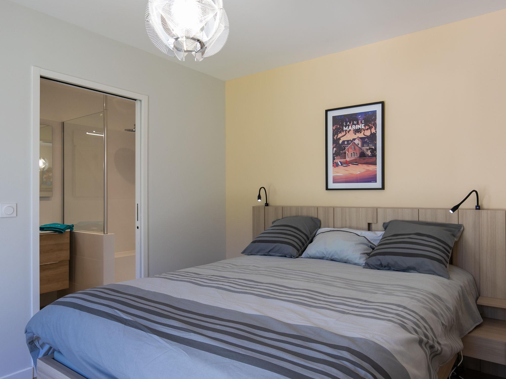 Beautiful single-family house "Keryanne", built in 2024. In the district of Kerfram 500 m from the centre of Plomelin, 11 km from the sea, 11 km from the beach, in a cul-de-sac. Private: property 630 m2 (fenced), garden wildlife garden and trees. In the house: storage room for bicycles. Parking (for 2 cars) on the premises. Grocery 500 m, supermarket 800 m, restaurant 500 m, bus stop 200 m, sandy beach "Plage de Kermor" 11 km, indoor swimming pool 12 km. Sports harbour 11 km, golf course (9 hole) 5 km, sailing school 11 km, riding stable 3 km. Nearby attractions: Quimper, Bénodet, Pont l'Abbé 12 km, Ste Marine 10 km, Le Guilvinec, Penmarc'h 24 km, Concarneau 35 km, Douarnenez 27 km. Hiking paths: GR 34, Rivière Odet.