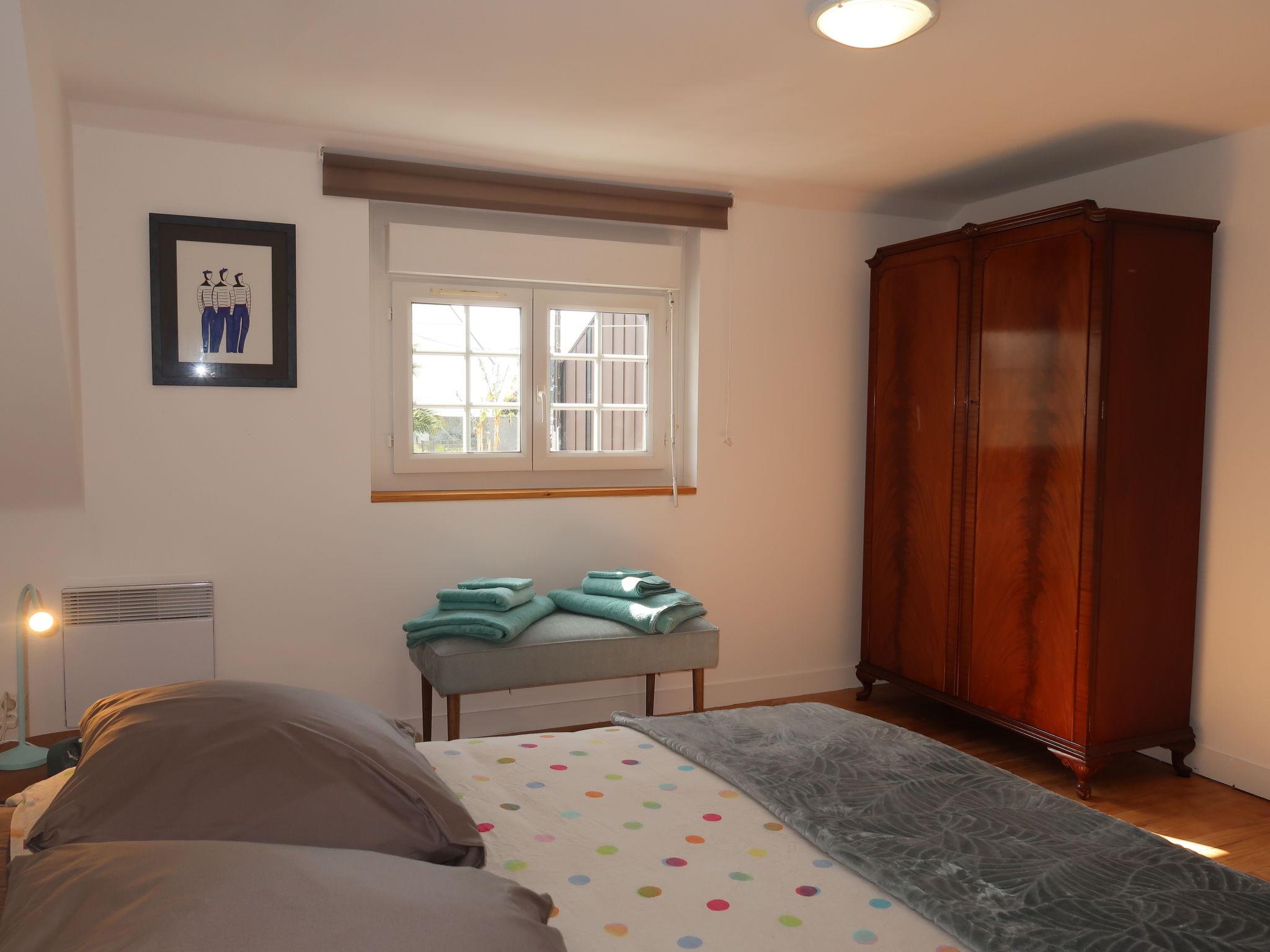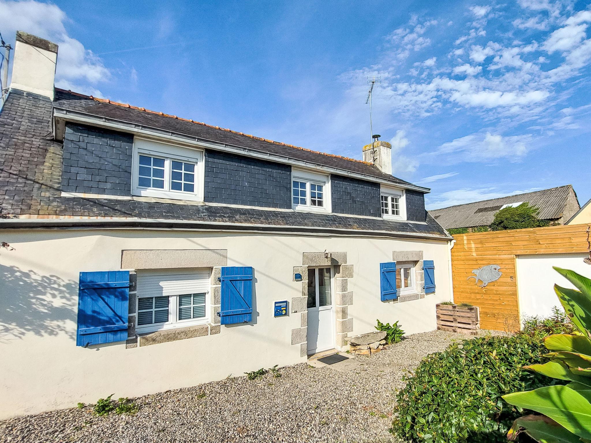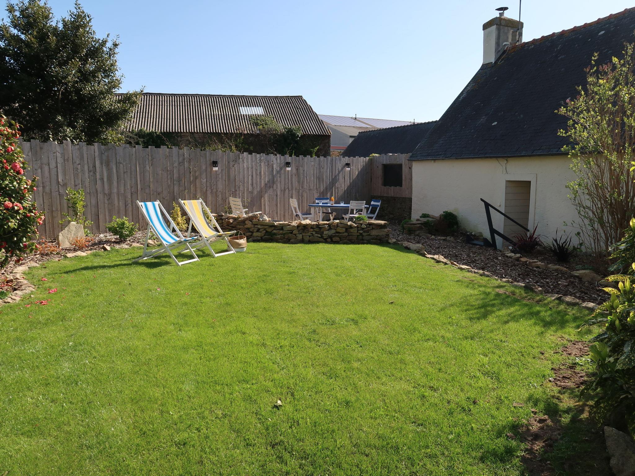 "Ty Bihan", 4-room house 75 m2 on 2 levels. Beautiful furnishings: open living/dining room with open-hearth fireplace, dining nook and TV (flat screen), DVD. Exit to the garden. Open kitchen (oven, dishwasher, 3 ceramic glass hob hotplates, toaster, kettle, microwave, freezer, electric coffee machine, Capsules for coffee machine (Nespresso) extra, raclette grill). Shower/WC. Electric heating. Upper floor: 1 room with 1 french bed (160 cm, length 200 cm). 1 room with 1 french bed (140 cm, length 190 cm). 1 room with 1 x 2 bunk beds (90 cm, length 190 cm). Parquet floors. Terrace furniture, barbecue, deck chairs (2). Facilities: washing machine, iron, children's high chair, baby cot for up to 2 year olds, hair dryer. Internet (WiFi). Please note: non-smoking house. Smoke alarm. 879385