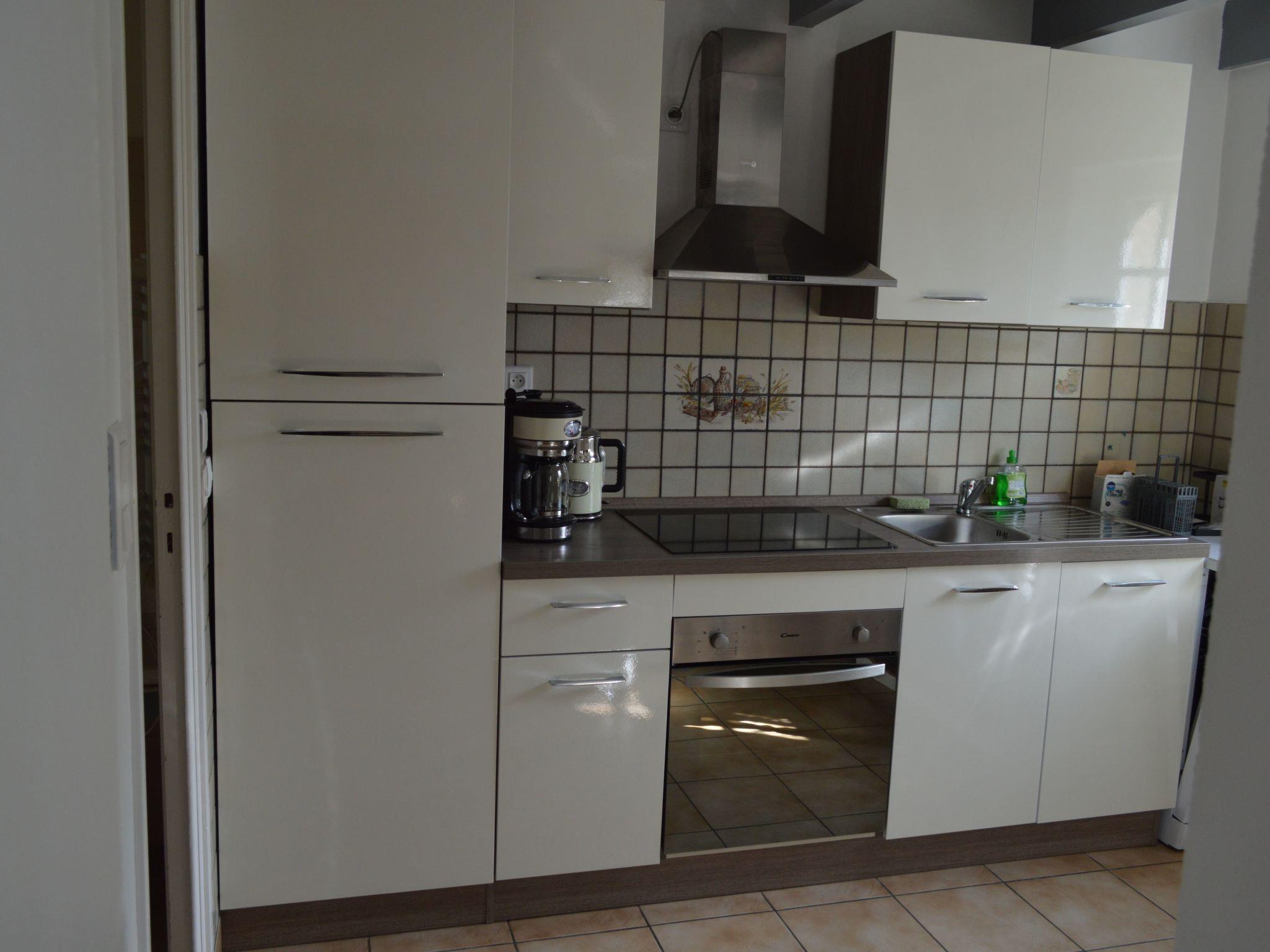 Living room (sofa, armchair, TV), fitted kitchen (oven, microwave, dishwasher, fridge-freezer, induction hob, electric coffee maker, kettle, teapot, toaster, etc.).