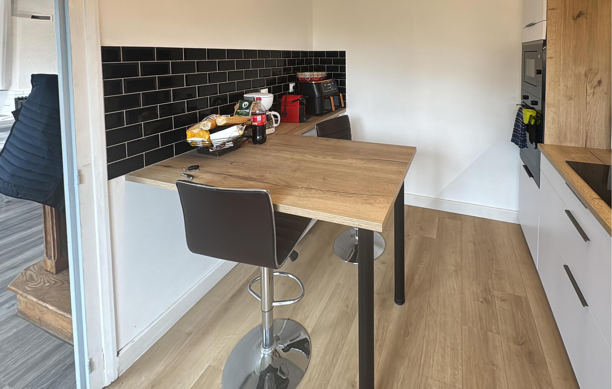 Brændeovnen skaber en hyggelig og meget behagelig atmosfære i stuen. Desuden kan I nyde badekarret med whirlpoolfunktion.