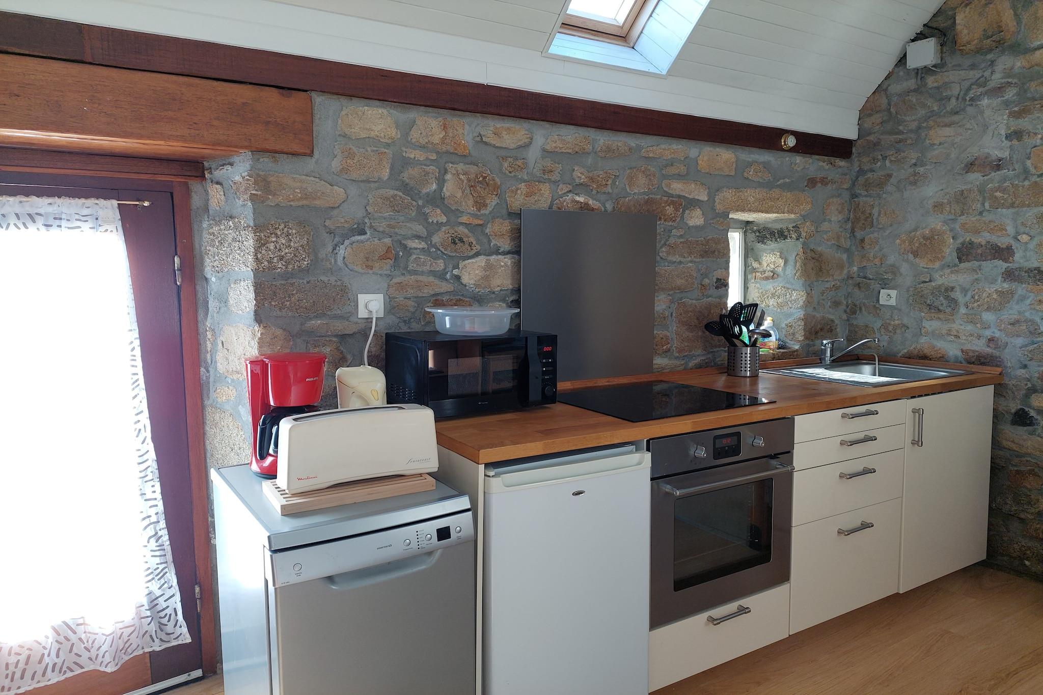 Hyggeligt stenhus med bretonsk flair på rummelig naturgrund nær fantastiske kystlandskaber. Dit smukke, rolige feriehus kombinerer med succes tradition og moderne komfort. Sandstranden og kyststien, der går rundt om hele kysten, kan hurtigt nås til fods på 400 meter. Plouarzel byder på en 11 km lang kystlinje og en overflod af fine sandstrande og små klippebugter. Den højeste megalit i Frankrig, Menhir de Kerloas, hører også til kommunen. Fra den maleriske fiskerihavn Le Conquet tilbydes bådoverfarter til øerne Ouessant og Molene. Der er cykeludlejning på disse bilfri øer. Noget helt særligt er en tur med gummibåd (12-personers både) til øerne med sælkolonier, en populær fotomulighed.