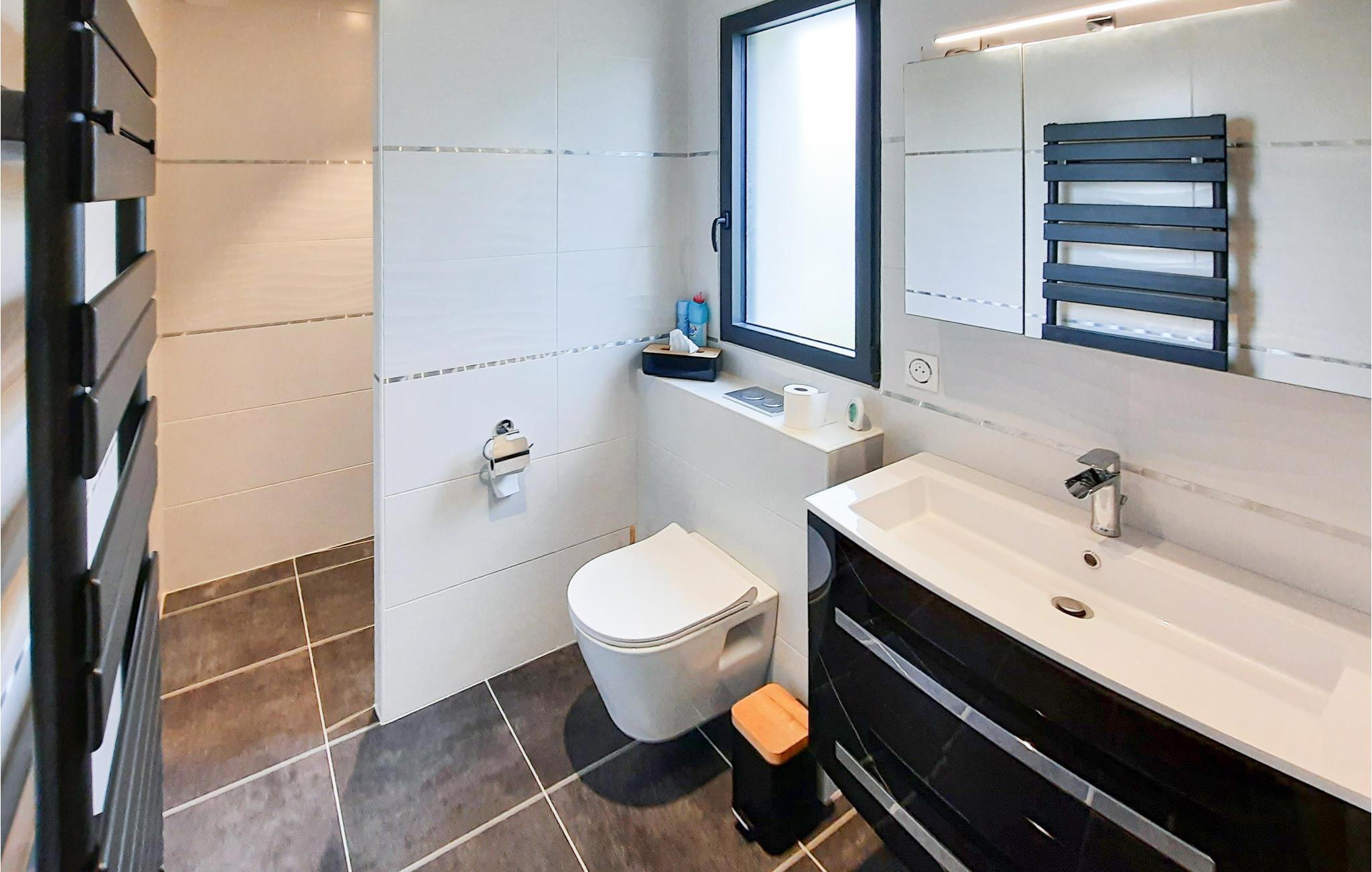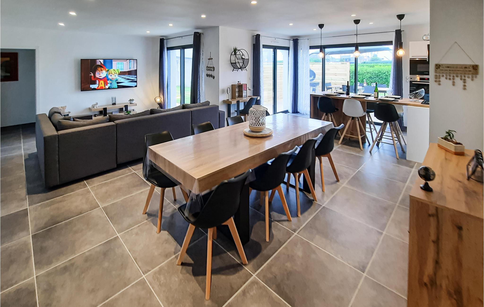 Huset ligger på en grund med privat have og har dejligt lyse rum, som er flor og moderne indrettet. Der er tre soveværelser, så feriehuset har masser af plads til en familie. I kan også se frem til en hyggelig stue med åbent køkken og to badeværelser samt separat toilet.