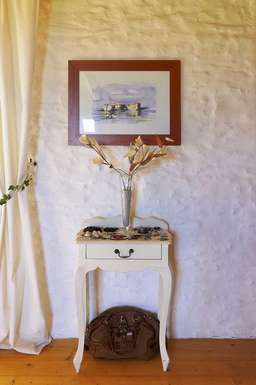 The property consists of two floors, with stone spiral stairs leading from one to the other. The ground floor has a fully-equipped kitchen with a dishwasher, oven, induction hob, microwave, freezer compartment, coffee machine and kettle. The dining room and the living room with satellite TV, a stereo system and a fireplace, as well as a laundry room with a vacuum cleaner, washing machine and dryer are also on the ground floor, along with a bathroom with a separate WC. The first floor has two bedrooms, each with two single beds alongside each other. There is another bathroom with a separate toilet. The second floor also has two bedrooms, each for two people, with their own bathroom and WC. Bed linen is included in the rental price. Hand towels can be booked in addition. Remember to bring towels for the beach.
