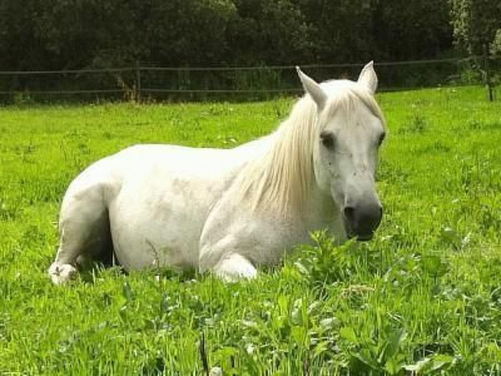 The country estate is surrounded by a five-hectare garden. At the heart of the site you can find a paddock with two horses. Next to it there is a pond inhabited by a lively swan, who is happy to keep you company. A grill, garden furniture and deckchairs are available for your exclusive use.