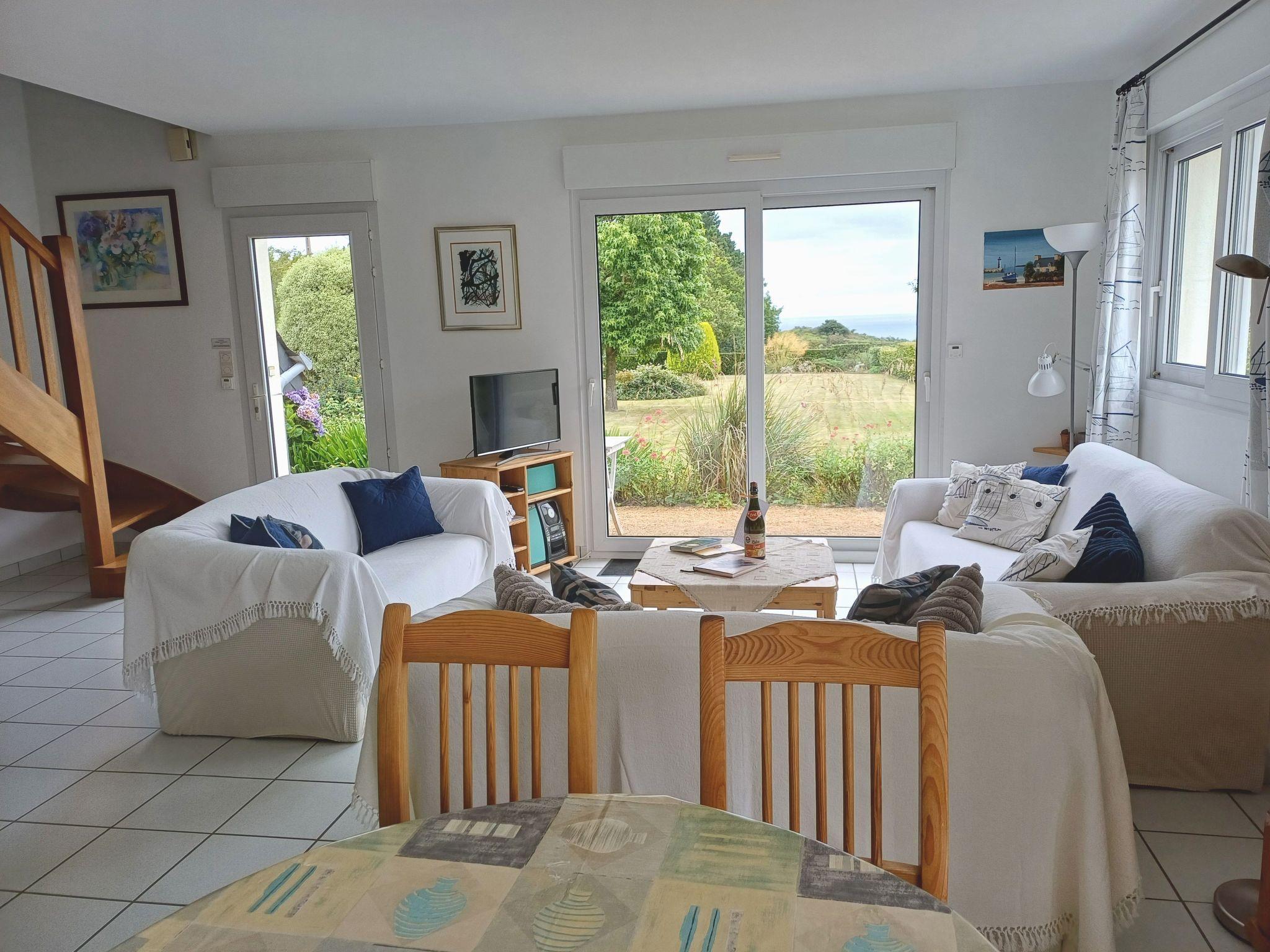 - Telephone with free flatrate to 65 countries- Internet access with W-LAN /WIFI for free- Non smoking house- Pets allowed, Photovoltaics and wallbox charging station for e-car. Plouha is a fun-loving Breton town set on one of the most beautiful sections of the Côtes d'Armor with pristine , infinite flat and therefore completely harmless natural beaches . The sheltered location in the great Bay of St. Malo, Mont St. Michel and the Channel Islands Jeursey /Geurnsey and at low tide some several hundred meters deep strand are ideal for holidays with children. At the same time Plouha is an ideal starting point for trips to explore some of the most charming historic towns , natural monuments and cultural heritage of Brittany. Plouha is known as a popular residence for retirees , but also for families with children. And popular because of the traditional festivals " Fest Noz " with music and dances in Breton tradition. This detached, modern, but tailored in style villa with sea views is a non-smoker house. It is quietly situated in a nature reserve of the " Pointe de Plouha ", the highest point of the cliffs of the Côtes d'Armor, in a small hamlet with almost exclusively traditional stone houses ( quiet cul de sac - no through traffic) . The house is bright, friendly, very comfortable and tastefully furnished and has a small way direct access to the coastal path and easy access to the natural beaches.Ground floor: living - dining room, satellite smart-LED-TV (ASTRA, terr., internet), CD player, radio, stereo, telephone with free Faltrate by 65 countries (list on request ), free Internet access with W-LAN/Wifi, 2 large sliding doors to 2 teraces. Open kitchen with ceramic hob, dishwasher, baking oven, 2 fridges with freezer , microwave, coffee maker, kettle, waffle iron, toaster. Utility room with washing machine , dryer, iron, ironing board, 1 bedroom with 2 single beds (200x90) . All the beds in the house in German standard size and with high quality latex mattresses. Bathroom with shower. Separate toilet. First floor: 2 bedrooms: 1 with double bed (2 x 200 x 90), 1 with 2 single beds (200x90). Bathroom with tub. Separate toilet. Large, beautifully landscaped garden. Terrace with teak furniture, charcoal grill, electric grill. Underfloor heating on the ground floor. Electric radiators upstairs. Electric shutters. Living space: 125 m² Land: 2450 m². Sea: 0,8 km, Beach: 0,8 km, Shopping: 4 km, Tennis: 4 km, Sailing: 8 km, Golf: 10 km, Riding: 3 km. Dog: allowed (except in the bedrooms). Bed linen (200x135), towels, bath towels and tea towels are brought by the tenant.Non-smoking house