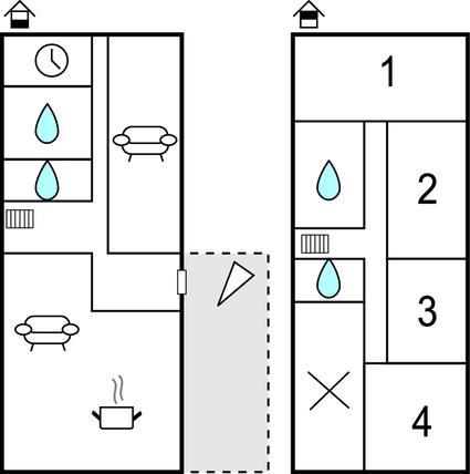 Soveværelse (nr. 4) - 1 Soveplads. (Enkeltseng(e)). 2 Sovepladser. (Dobbeltseng(e)).