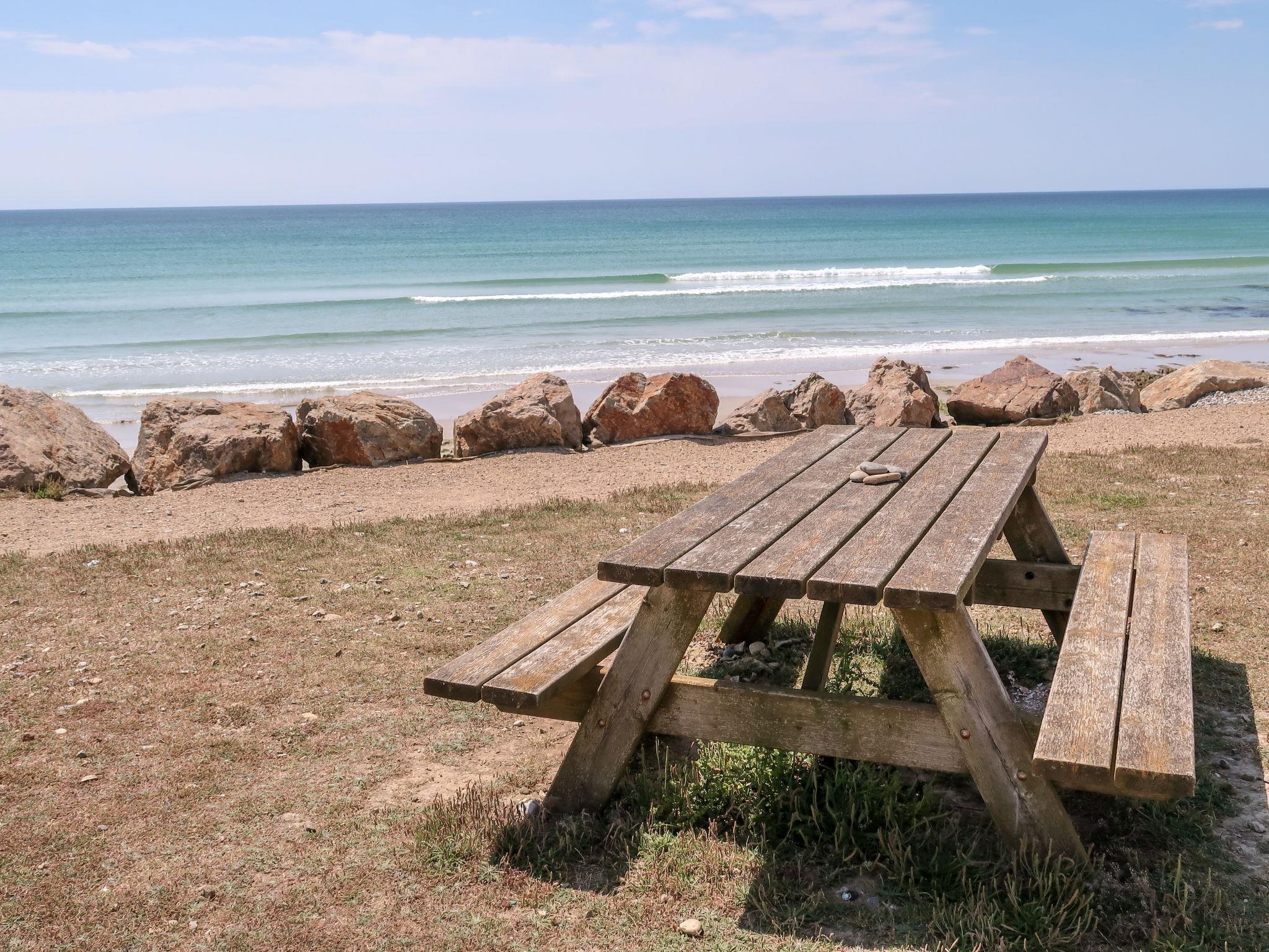 Terraced house "Partie de pêche". 4.5 km from the centre of Plozévet, 5.5 km from the centre of Pouldreuzic, 50 m from the sea, 50 m from the beach, road to cross. For shared use: natural state property 3'000 m2 with lawn. In the house: washing machine (for shared use). Parking on the premises. Supermarket 4.5 km, restaurant 1.1 km, bar 1.1 km, bus stop 5 km. Sports harbour 16 km, surf school 1.1 km.