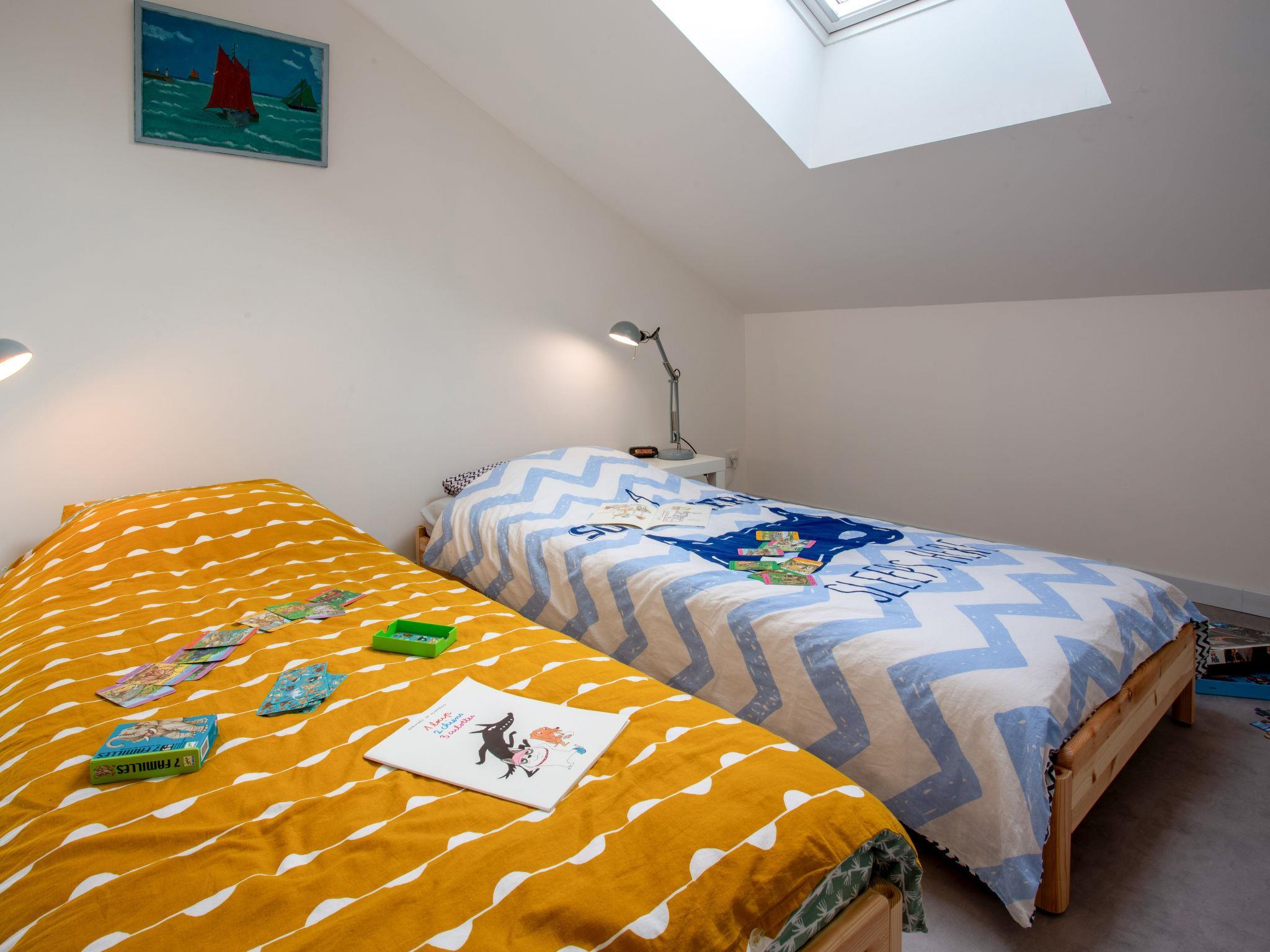 "Ty Gwen", 3-room terraced house 49 m2. Tasteful furnishings: living/dining room with TV (flat screen), electric shutters. 1 room with 1 french bed (1 x 140 cm, length 190 cm). 1 room, on 2 levels with 1 bed (90 cm, length 190 cm), 1 french bed (1 x 140 cm, length 190 cm). Open kitchen (oven, dishwasher, 3 induction hot plates, toaster, kettle, microwave, electric coffee machine, raclette grill). Shower/WC. Electric heating. Facilities: washing machine, iron, hair dryer. Internet (WiFi, free). Please note: non-smoking house. Smoke alarm. Offer by a private individual according to Art. 155, IV of CGI. 4413100031753