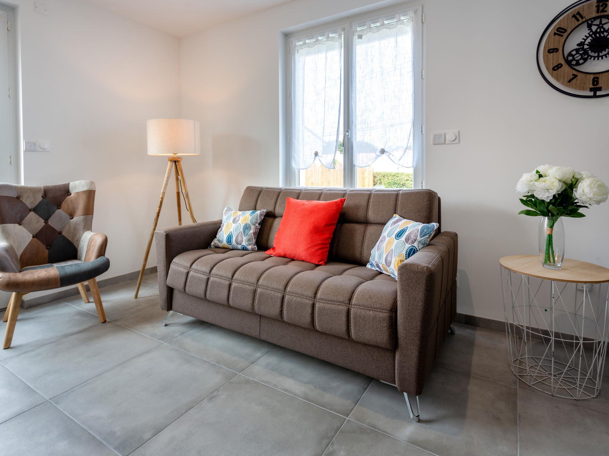 Modern, beautiful single-family house. In the district of La Ficaudière, in a secluded, quiet position in the residential district, 4 km from the sea, 4 km from the beach. Private: boules. Shop 1.5 km, supermarket 1.5 km, shopping centre 1.5 km, bakery 1.5 km, 35 minute walk to the centre, bus stop "Gare de Pornic" 4 km, railway station "Pornic" 4 km, sandy beach "Plage des Grandes Vallées" 4 km, indoor swimming pool 3 km, thermal baths "Alliance Pornic Thalasso & Spa" 5 km. Sports harbour 4 km, golf course (18 hole) 2 km, minigolf 2 km, riding stable 2 km, sports centre 3 km. Nearby attractions: Pornic Aventure Accrobranche 3 km, Usine Biscuiterie St Michel 8 km, Saint Brevin les Pins 14 km, Legendia Parc 19 km, Planète Sauvage 33 km, La Baule - Pornichet 35 km. Well-known lakes can easily be reached: Lac de Saint Viaud - Ski nautique 19 km. Hiking paths: Sentier des Douaniers 4 km. Please note: car recommended. The keys‘ handover takes place by the agency Interhome in Pornic, 6 km.