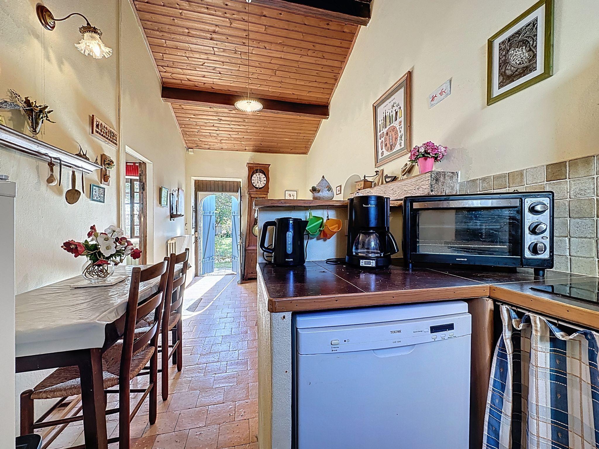 "L'Agapanthe", 3-room house 70 m2, south-west facing position. Living/dining room with open-hearth fireplace (only for decoration), TV (flat screen). Large walk-through room with 1 french bed (1 x 140 cm, length 190 cm). Exit to the terrace, west facing position. 1 room with 1 french bed (1 x 140 cm, length 190 cm), TV (flat screen). Small kitchen (mini-oven, oven, dishwasher, 2 induction hot plates, toaster, kettle, microwave, freezer, electric coffee machine, Capsules for coffee machine (Nespresso) extra). Shower/WC. Gas heating. Terrace, south facing position and west facing position. Terrace furniture, barbecue. Facilities: washing machine, iron, hair dryer. Internet (WiFi, extra). Parking (2 cars). Please note: non-smoking house. Maximum 1 pet/ dog allowed. Smoke alarm. Offer by a private individual according to Art. 155, IV of CGI. 44131000214GQ