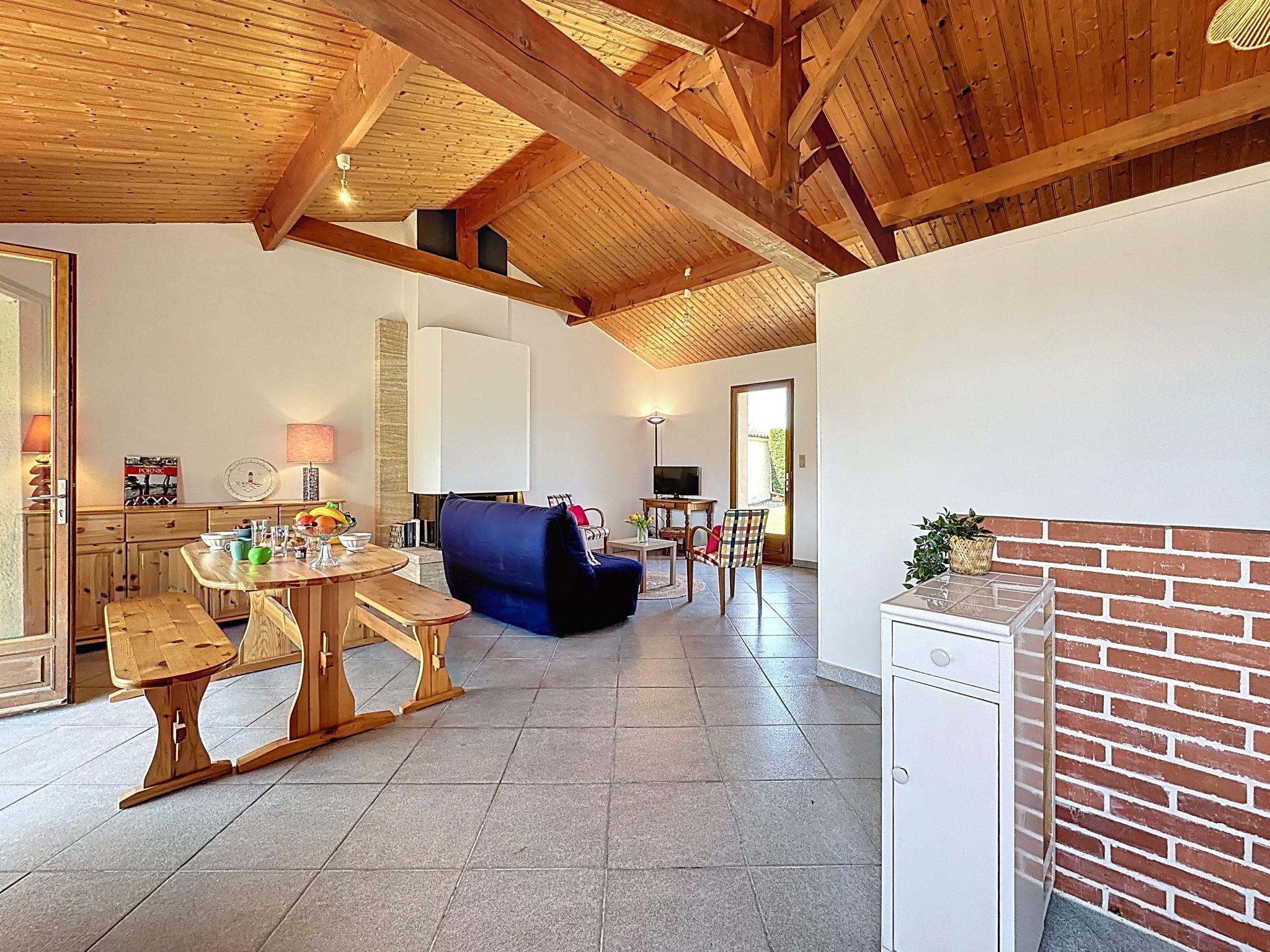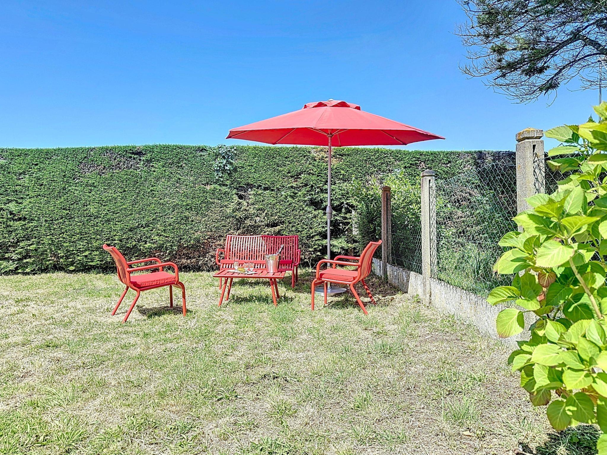 "Le Porteau", 3-room house 65 m2, south-west facing position. Simple furnishings: living/dining room with TV (flat screen). Exit to the terrace, west facing position. 2 rooms, each room with 1 french bed (1 x 140 cm, length 190 cm). Exit to the garden, east facing position and west facing position. Open kitchen (oven, 3 induction hot plates, toaster, kettle, microwave, electric coffee machine, Capsules for coffee machine (Dolce Gusto) extra). Bathroom, sep. WC. Electric heating. Facilities: washing machine, iron, hair dryer. Internet (WiFi, extra). Parking (fenced). Please note: fridge without freezer, non-smoking house. 1 small pet/ dog allowed. Smoke alarm. Offer by a private individual according to Art. 155, IV of CGI. 44131001222S9