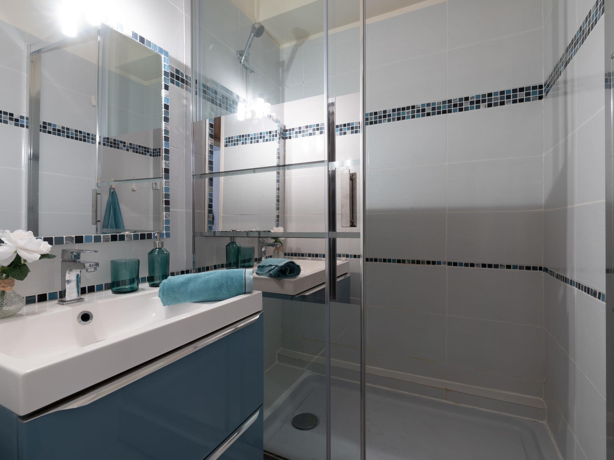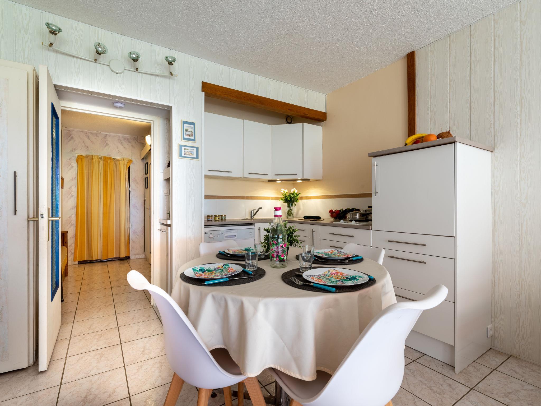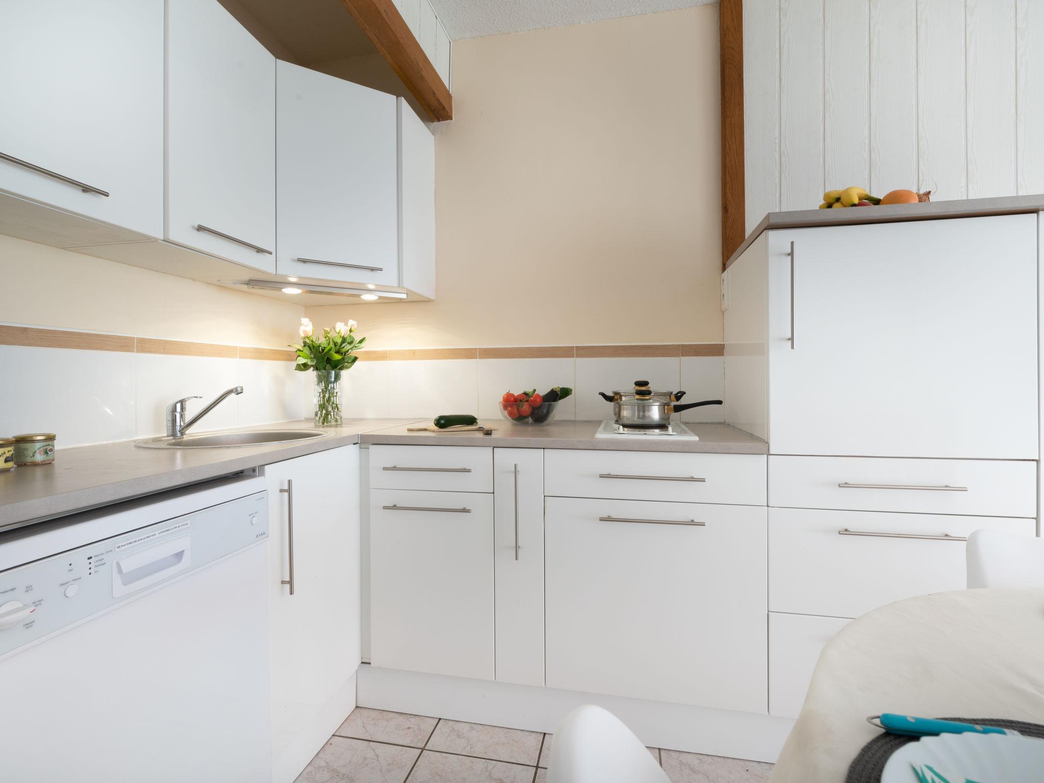 1-room studio 31 m2, on the ground floor, south facing position. Object suitable for 2 adults + 2 children. Living/dining room with 1 double sofabed (1 x 120 cm, length 190 cm), TV (flat screen). Exit to the terrace. Sleeping alcove with 1 x 2 bunk beds (80 cm, length 190 cm). Kitchenette (2 hot plates, mini-oven, dishwasher, microwave, electric coffee machine). Shower, sep. WC. Terrace 12 m2, south facing position, patio 10 m2, south facing position. Terrace furniture. View of the garden. Facilities: Internet (WiFi, extra). Parking. Instead of an enclosed bedroom, some sleeping areas are located in an open-plan area (gallery, alcove, etc.).