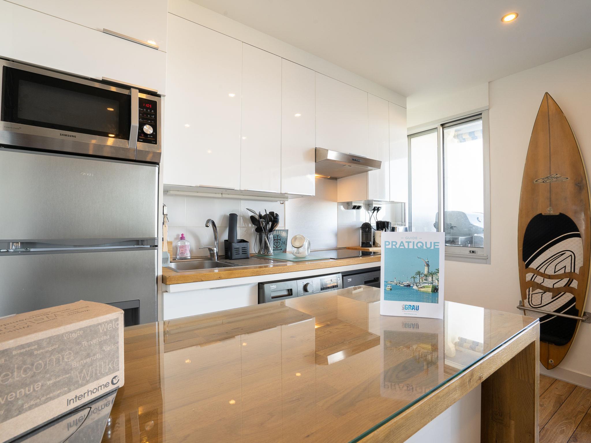 Residence "Le Grand Large", 3 storeys. In the district of la Plage Sud, 80 m from the sea, 30 m from the beach. Parking (limited number of spaces). Shop, grocery 50 m, supermarket 4 km, restaurant 50 m, bus stop "le Quai aux fleurs" 600 m, railway station 3.6 km, sandy beach "Plage Sud" 30 m, indoor swimming pool 3 km, thermal baths "Thalazur" 500 m. Sports harbour 500 m, riding stable 4 km. Nearby attractions: Casino Flamingo 2.5 km, Seaquarium 2.5 km, Aigues-Mortes 8 km, La Grande-Motte 13 km, Montpellier 35 km, Nîmes 52 km. Please note: airfield 25 km from the property.