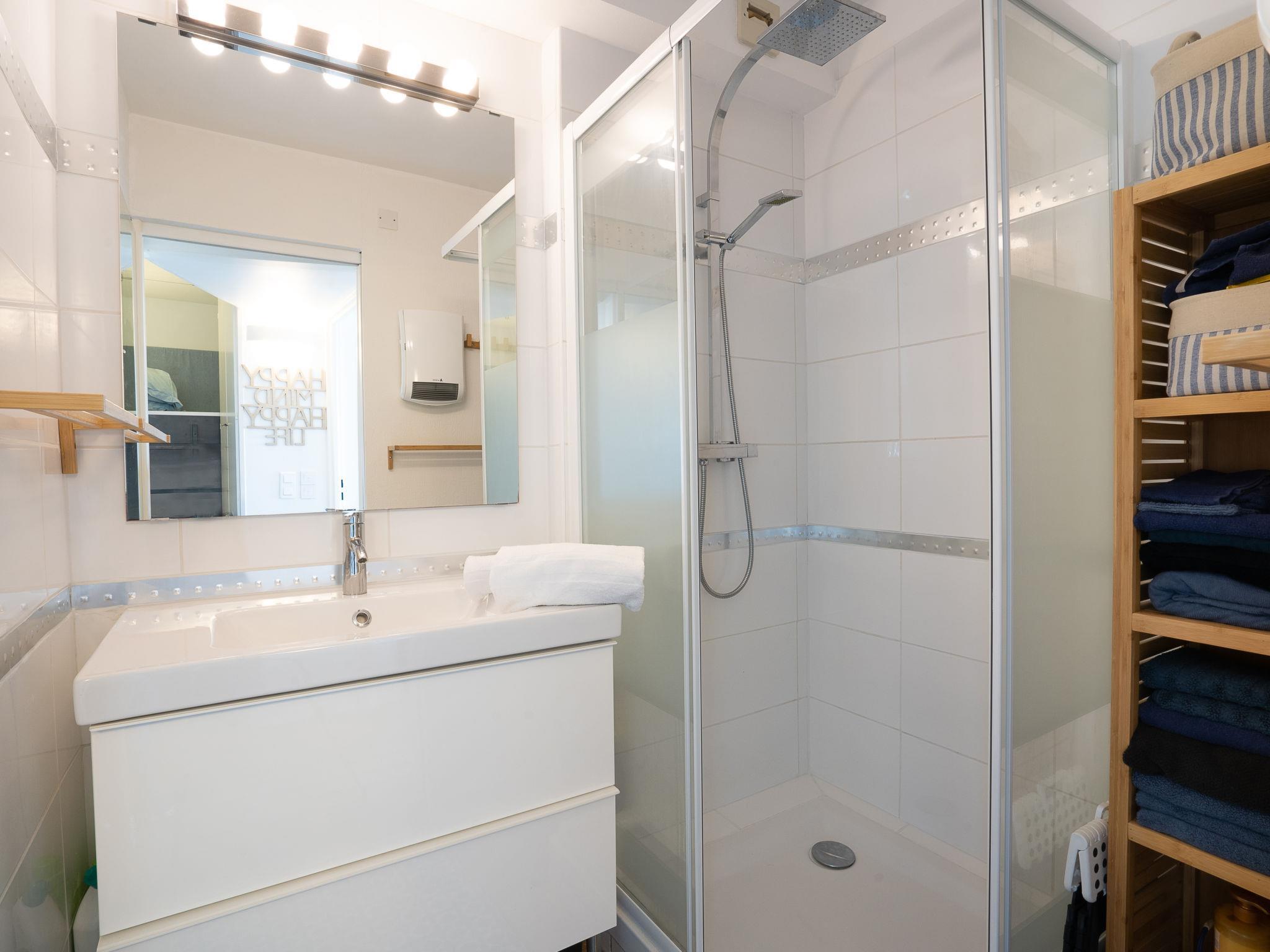 1-room studio 29 m2 on 2nd floor. Object suitable for 2 adults + 2 children. Beautiful and cosy furnishings: entrance hall with 1 x 2 bunk beds (80 cm, length 190 cm). Living room with 1 sofabed (150 cm, length 190 cm), TV (flat screen). Exit to the terrace. Kitchenette (dishwasher, 3 induction hot plates, freezer, electric coffee machine, combination microwave). Shower, sep. WC. Terrace 18 m2, south-west facing position. Terrace furniture. Beautiful view of the sea. Facilities: washing machine. Internet (WiFi, extra). Please note: smoke alarm, no lift.