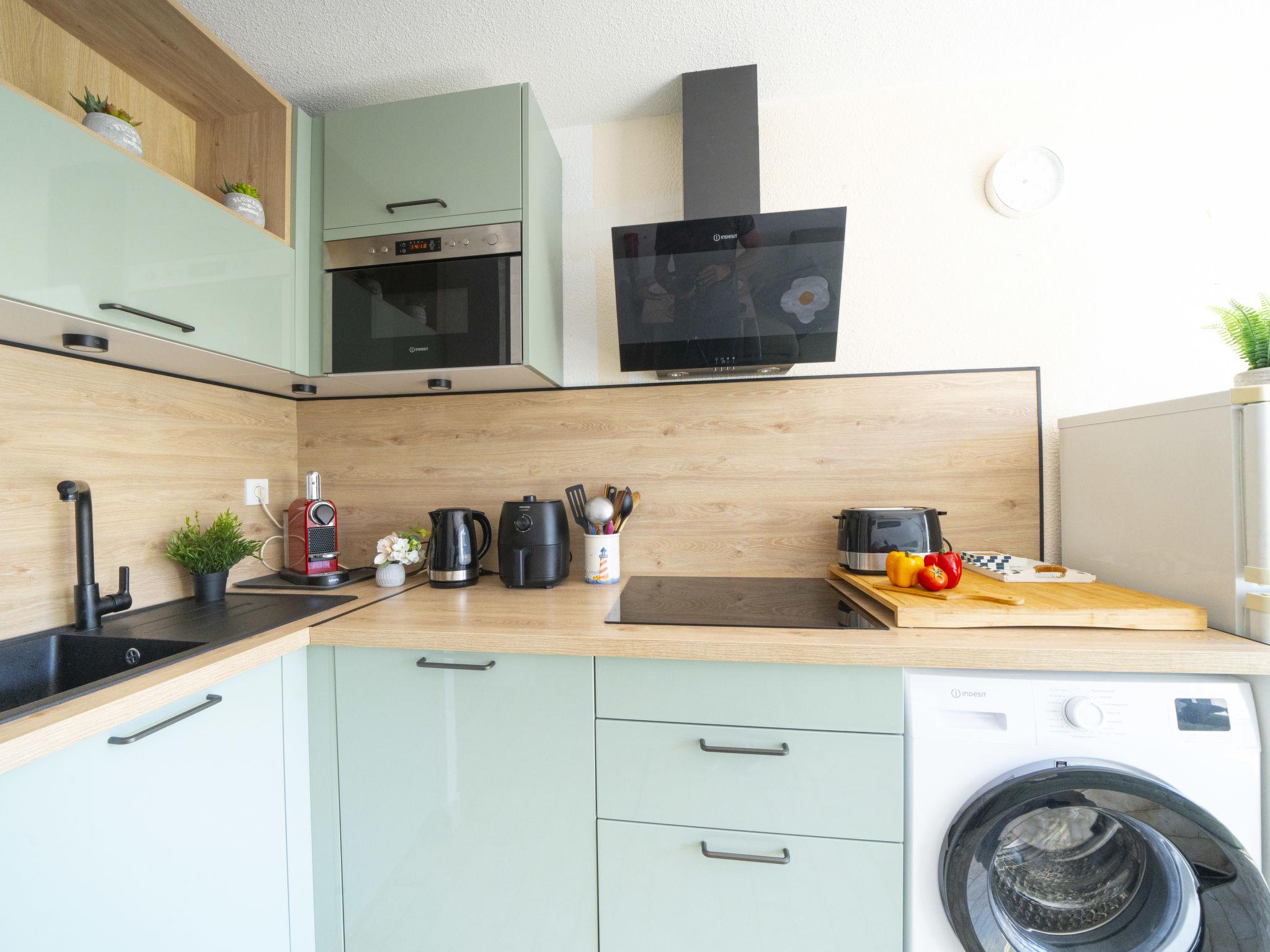 1-room apartment 20 m2 on 2nd floor. Object suitable for 2 adults + 1 child. Renovated in 2025, comfortable and cosy furnishings: Studio with 1 sofabed (160 cm, length 200 cm), dining table, TV, flat screen, electric heating and air conditioning. Exit to the balcony. Sleeping alcove with 1 bed (90 cm, length 190 cm), shower/WC. Open kitchen (dishwasher, 3 ceramic glass hob hotplates, toaster, kettle, microwave, freezer, electric coffee machine). Balcony 6 m2, south facing position and west facing position. Facilities: washing machine. Internet (WiFi, free). Please note: no parking. Maximum 1 pet/ dog allowed. Smoke alarm, no lift. Offer by a private individual according to Art. 155, IV of CGI. 30133000857RM