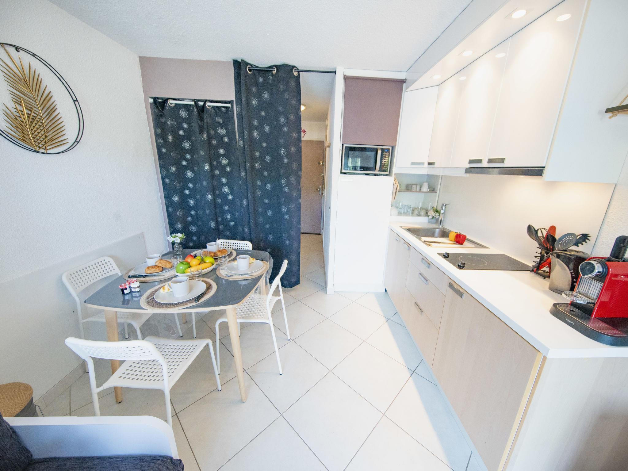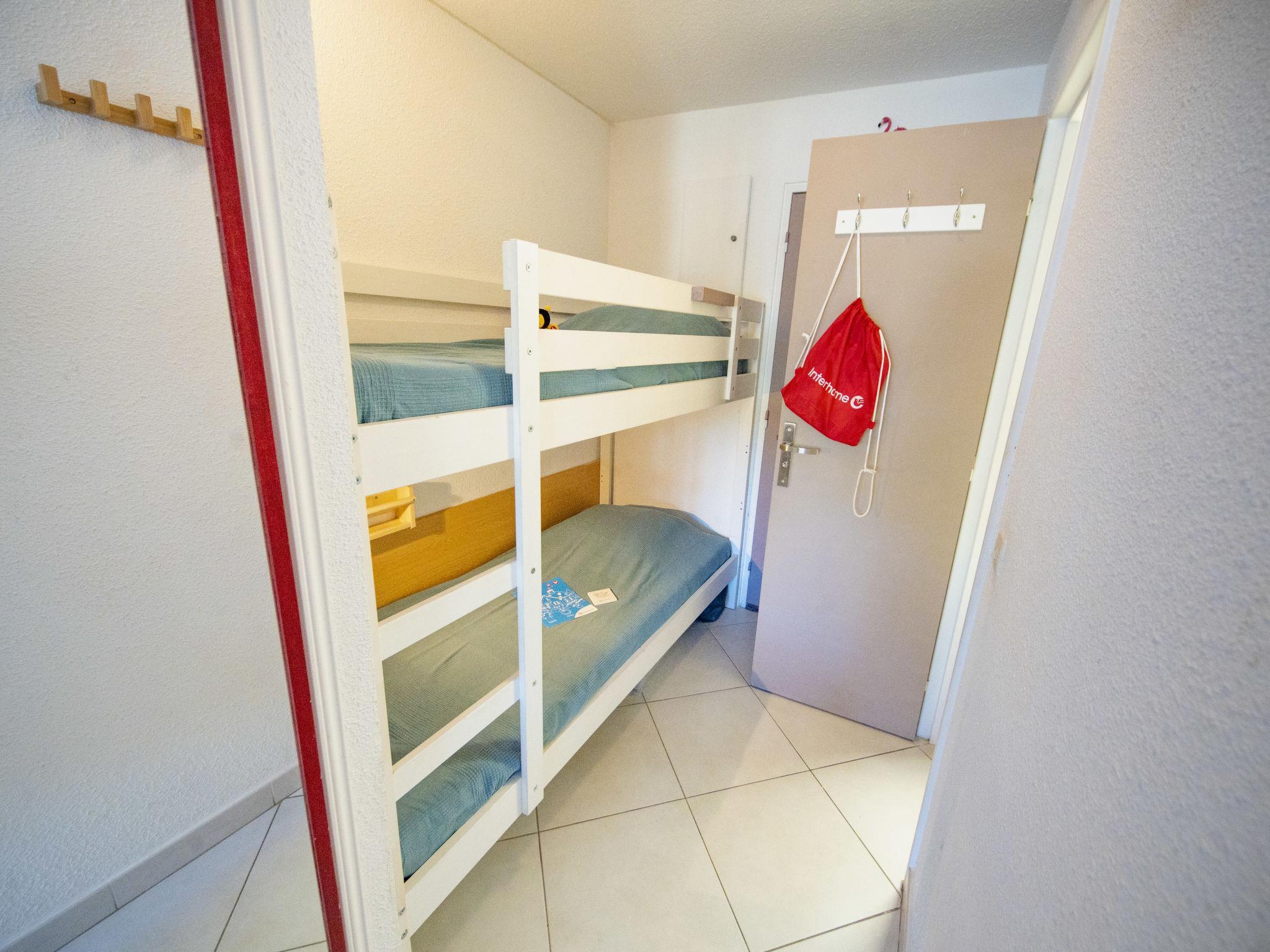 1-room studio 21 m2 on 2nd floor. Object suitable for 2 adults + 2 children. Living/dining room with 1 fold-away bed (160 cm, length 190 cm), dining table and TV (flat screen). Exit to the balcony. Sleeping alcove with 1 x 2 bunk beds (90 cm, length 190 cm), shower/WC. Open kitchen (mini-oven, oven, 2 ceramic glass hob hotplates, toaster, kettle, microwave, electric coffee machine). Electric heating, air-conditioning. Balcony 5 m2. Facilities: Internet (WiFi, free). Parking space n 477 (1 car). Please note: non-smokers only. Smoke alarm, no lift. Offer by a private individual according to Art. 155, IV of CGI. 3013300102375