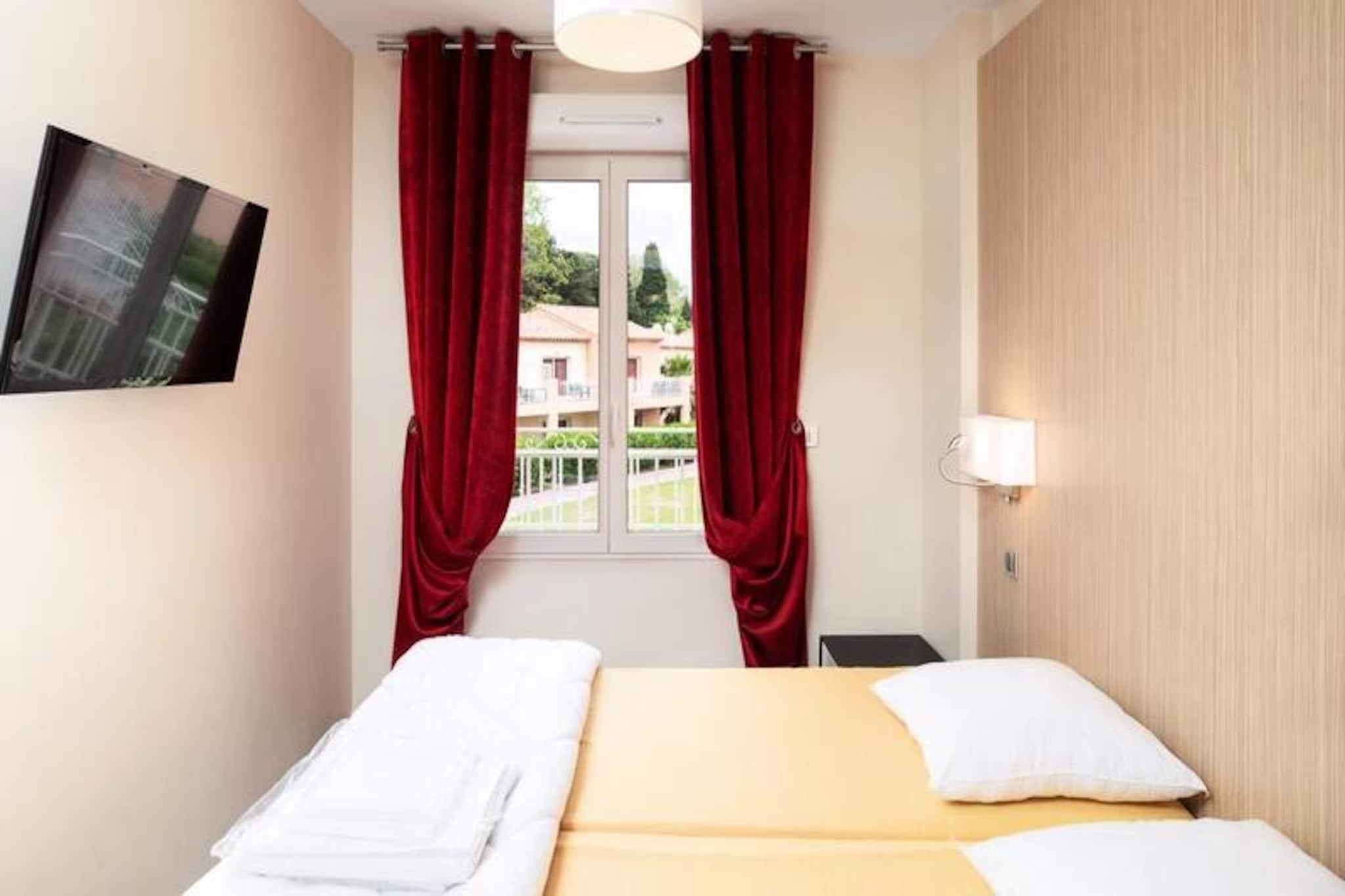 Denne rummelige lejlighed er et godt valg for en ferie ved havet, kun 200 meter fra stranden. Det kan komfortabelt rumme op til 4 gæster med en sovesofa til to, to soveværelser med enkeltsenge og to badeværelser med separat bruser og toilet. Ejendommen er kæledyrsvenlig og tillader et kæledyr pr. lejlighed mod et tillægsgebyr. Nyd gratis trådløs internetadgang, tv og inkluderet sengetøj og håndklæder. Et babysæt (krybbe, badekar, høj stol) er tilgængeligt efter anmodning, hvilket gør det til en fantastisk mulighed for familier. Beliggende i hjertet af Saint-Tropez-bugten, er denne lejlighed omgivet af fantastiske strande og en række attraktioner. Den middelalderlige landsby Grimaud, den berømte Saint-Tropez og den maleriske Port-Grimaud med dens kanaler er alle inden for rækkevidde. Du finder også charmerende caféer, lokale markeder og vinmarker, der tilbyder smagninger i kort afstand, så du fuldt ud kan opleve den pulserende atmosfære på den franske riviera. Lejligheden har et fuldt udstyret tekøkken, så gæsterne kan tilberede måltider, når det passer dem. Det har også en privat terrasse til at nyde udendørs. Den udendørs pool (uopvarmet) er perfekt til en forfriskende dukkert, og parkering er tilgængelig på stedet. Boligen tilbyder slutrengøring, og den lokale turistskat skal betales på stedet.