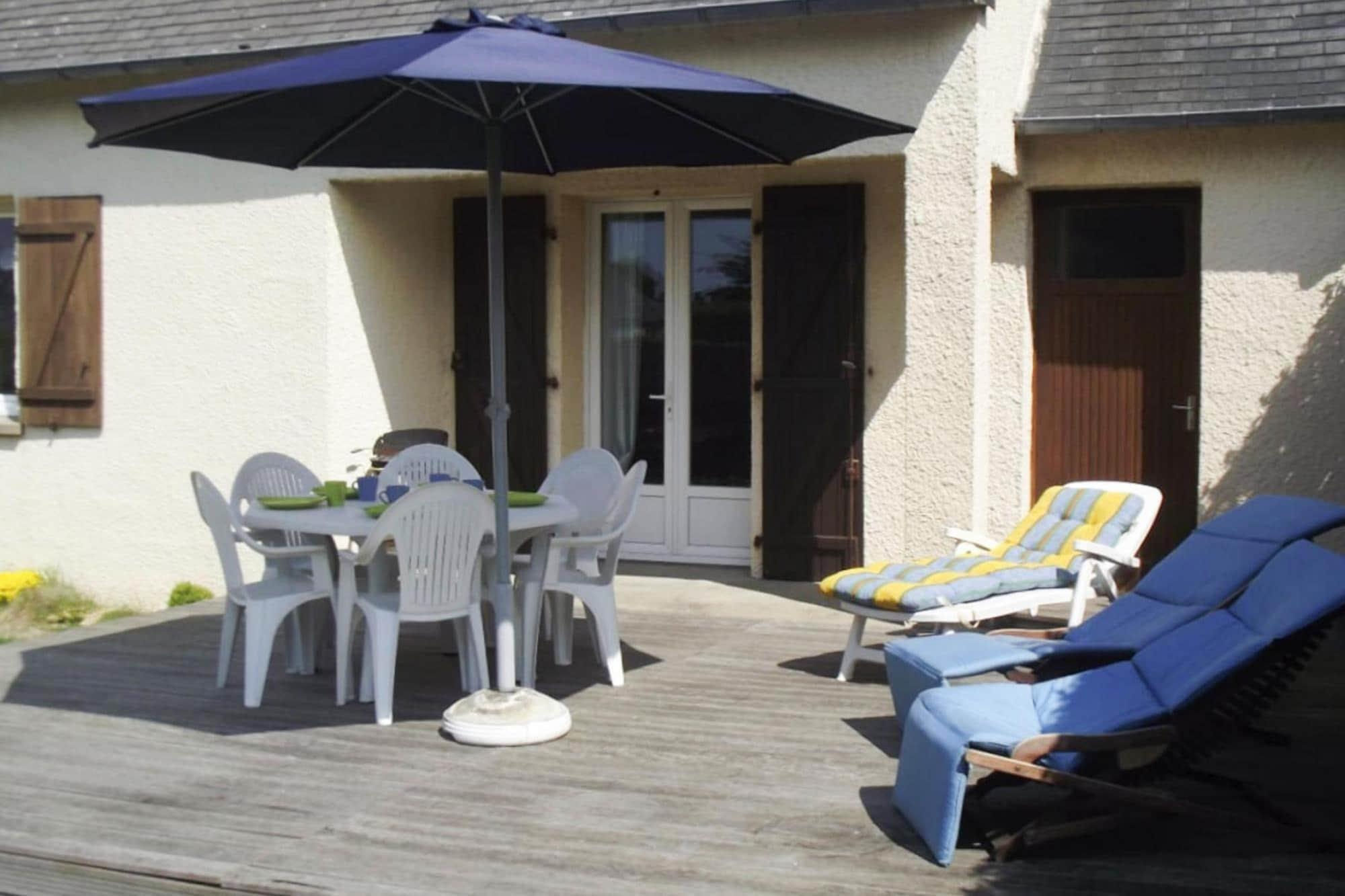 Dette komfortable og lyse feriehus har en sydvendt terrasse og ligger kun 400 m fra en stor hvid sandstrand. Beliggende i det rolige Domaine de la Mer-kvarter, kan det prale af en lukket have med udendørs bruser, ideelt efter en slentretur på stranden. Portbail, en badeby med Blå Flag, tilbyder svømning, vandsport, udendørsaktiviteter og sommerunderholdning samt udstillinger hele året rundt. Foodies vil sætte pris på den lokale slagter og ultrafriske fisk og skaldyr.