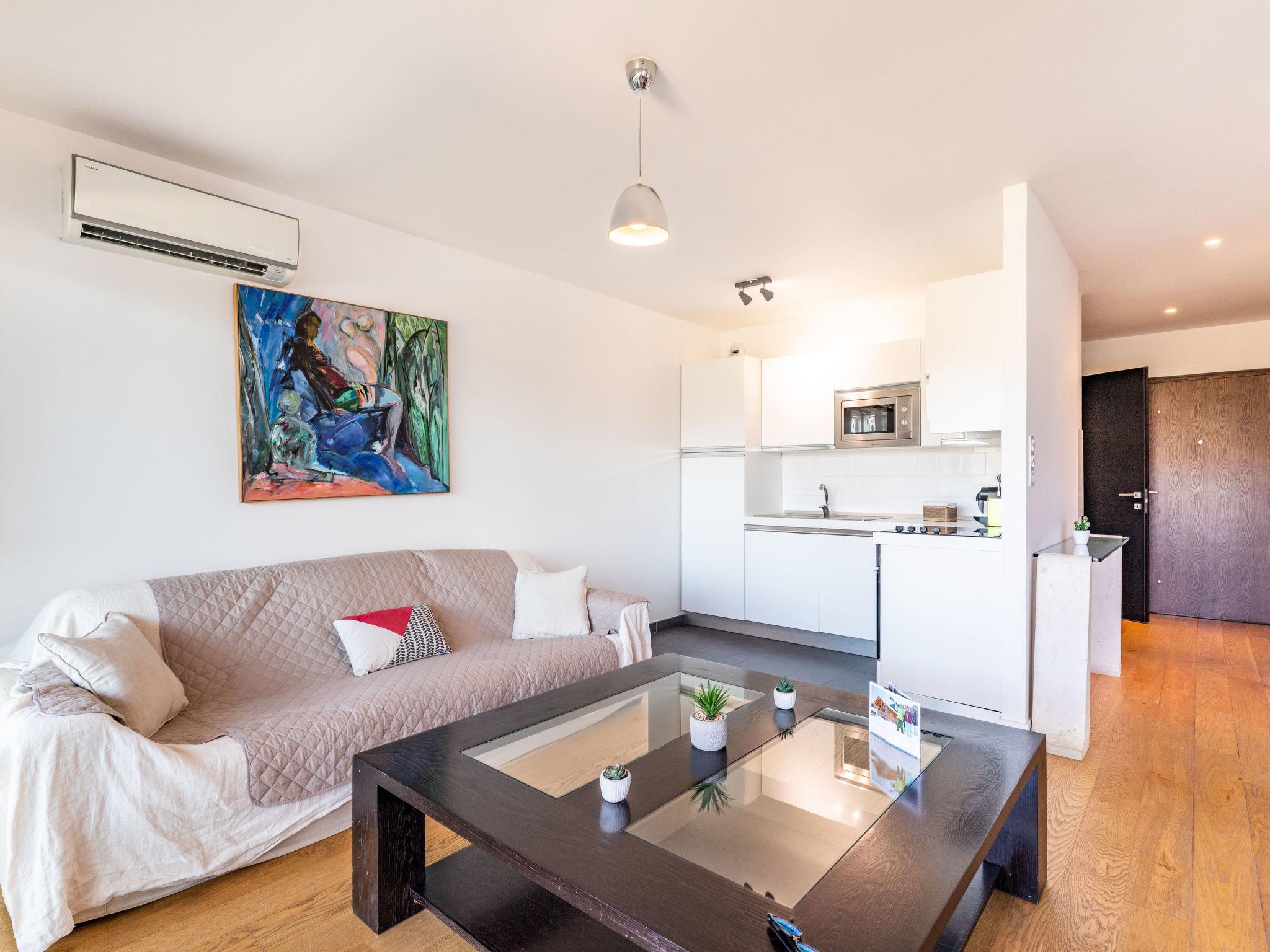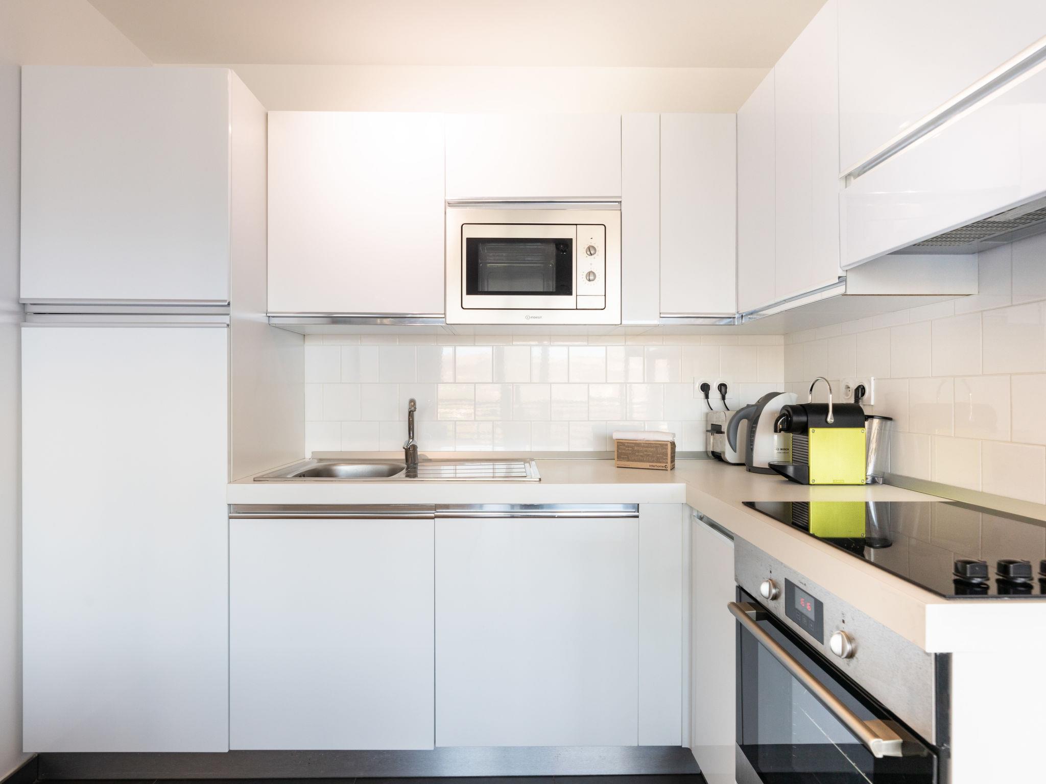 2-room apartment 57 m2 on 3rd floor. Comfortable and cosy furnishings: living/dining room with 1 double sofabed (140 cm, length 190 cm), TV (flat screen). Exit to the balcony. 1 room with 1 french bed (160 cm, length 200 cm), TV (flat screen). Open kitchen (4 hot plates, oven, dishwasher, toaster, kettle, microwave, electric coffee machine). Shower/WC, sep. WC. Electric heating, air-conditioning. Balcony 12 m2. Balcony furniture. View of the swimming pool. Facilities: washing machine. Internet (WiFi, free). Please note: non-smokers only. Smoke alarm.