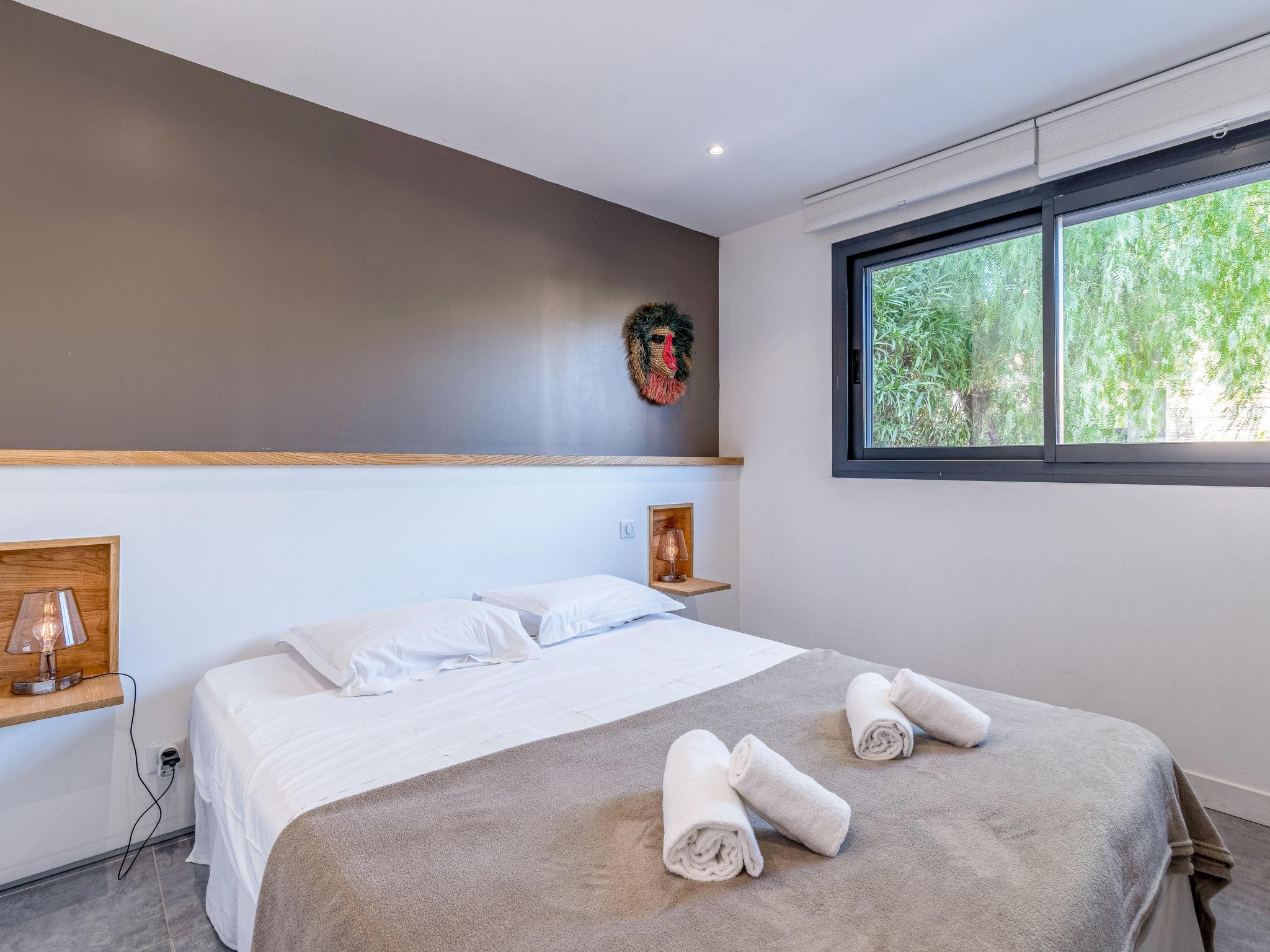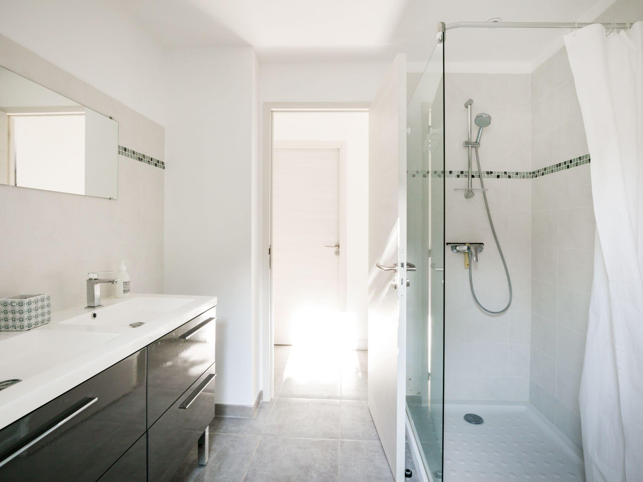 4-room terraced house 94 m2 on 2 levels. Object suitable for 6 adults. Modern and cosy furnishings: living/dining room with TV. 1 room with 1 french bed (1 x 160 cm, length 200 cm). Exit to the terrace. 1 room with 1 french bed (1 x 160 cm, length 200 cm). Open kitchen (oven, dishwasher, 4 ceramic glass hob hotplates, toaster, kettle, microwave, electric coffee machine, Capsules for coffee machine (Nespresso) extra) with air conditioning. Shower, sep. WC. Upper floor: 1 room with 1 french bed (1 x 160 cm, length 200 cm), air conditioning. Exit to the balcony. Shower/WC. Electric heating, air-conditioning. Balcony 12 m2, 2 terraces 45 m2. Terrace furniture, barbecue. Facilities: washing machine, dryer. Internet (WiFi, free). Parking at the house. Please note: non-smokers only. Smoke alarm. 2A13900019265