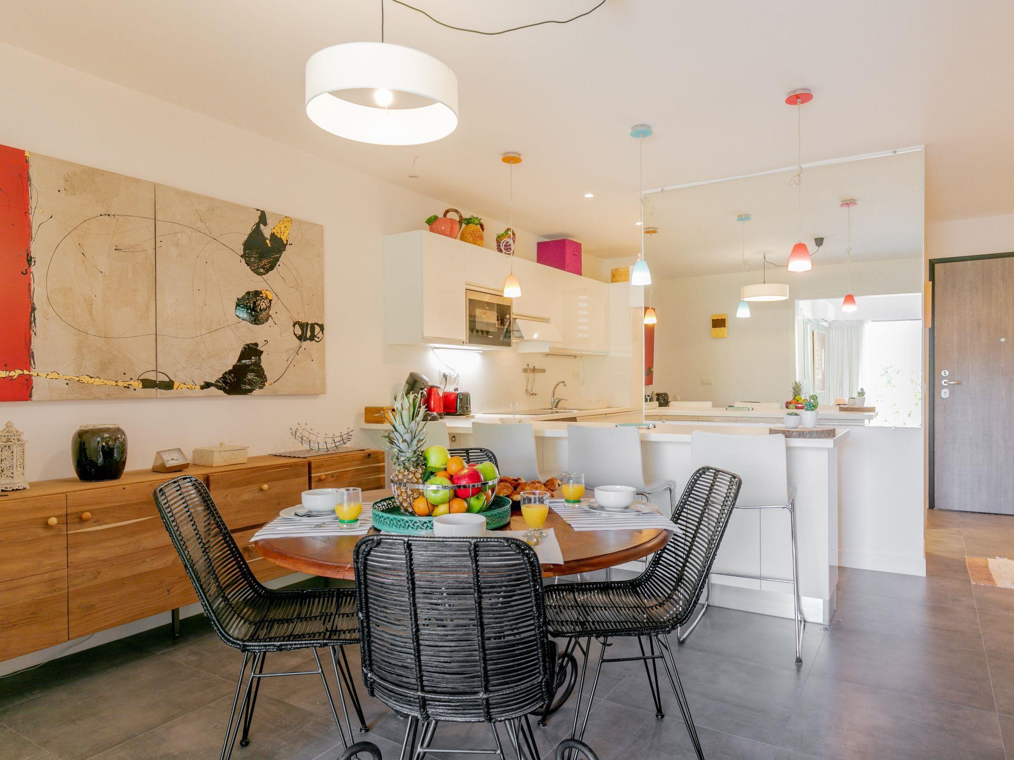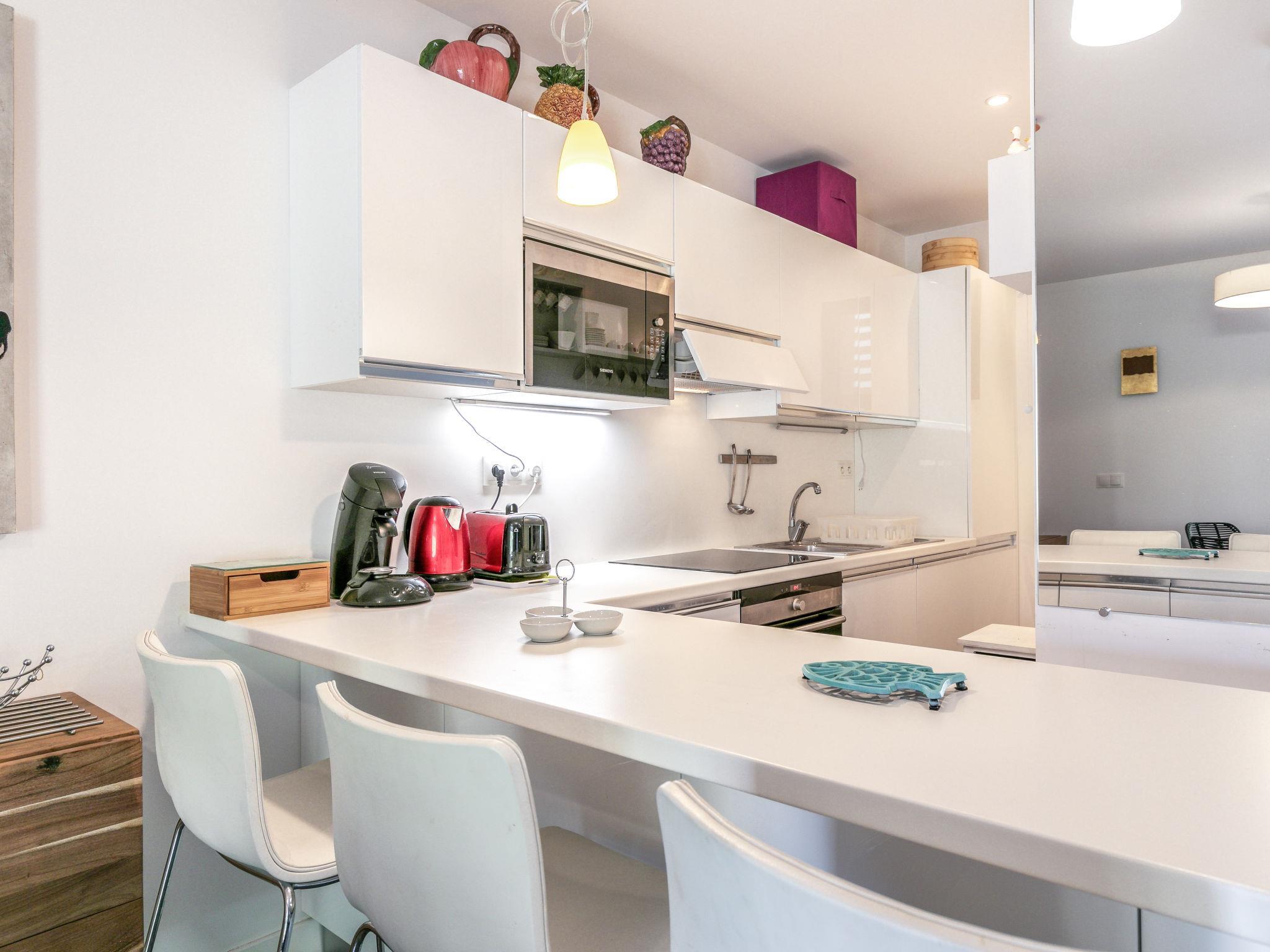 "Bastion", 2-room apartment 80 m2 on 1st floor. Comfortable and beautiful furnishings: living/dining room with TV (flat screen). Exit to the terrace. 1 small room with 2 beds (90 cm, length 190 cm). Alcove with 1 french bed (160 cm, length 200 cm). Open kitchen (3 hot plates, oven, dishwasher, toaster, kettle, microwave, freezer, electric coffee machine). 2 showers/WC. Electric heating, air-conditioning. Terrace 15 m2. Terrace furniture. Facilities: washing machine. Internet (WiFi, extra). Garage space n 100. Please note: telephone for incoming calls only, non-smokers only. Smoke alarm. Instead of an enclosed bedroom, some sleeping areas are located in an open-plan area (gallery, alcove, etc.). 2A247001406A5