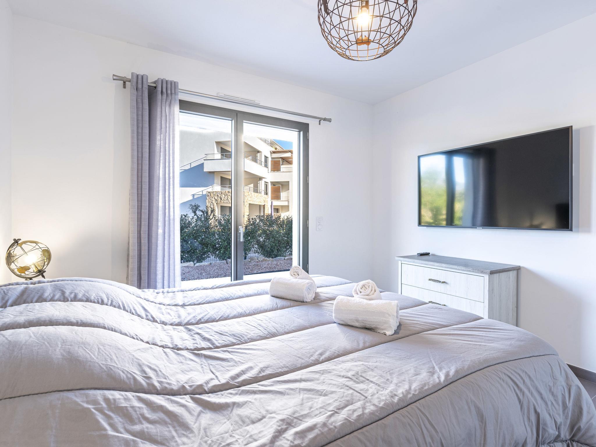 "Domaine d'Arca G1", 3-room apartment 86 m2, on the ground floor. Modern furnishings: living/dining room with panoramic window with 1 double sofabed (140 cm, length 190 cm), TV (flat screen). Exit to the garden, to the terrace. 1 room with 1 french bed (160 cm, length 200 cm). Exit to the terrace. 1 room with 1 french bed (160 cm, length 200 cm). Exit to the terrace. Open kitchen (oven, dishwasher, 1 induction hot plates, 4 gas rings, kettle, microwave, electric coffee machine). Bath/WC. Electric heating, air-conditioning. Terrace 40 m2, terrace 15 m2, garden. Terrace furniture, electric barbecue. View of the mountains. Facilities: washing machine. Internet (WiFi, free). Parking. Please note: smoke alarm. 2A247000120E2