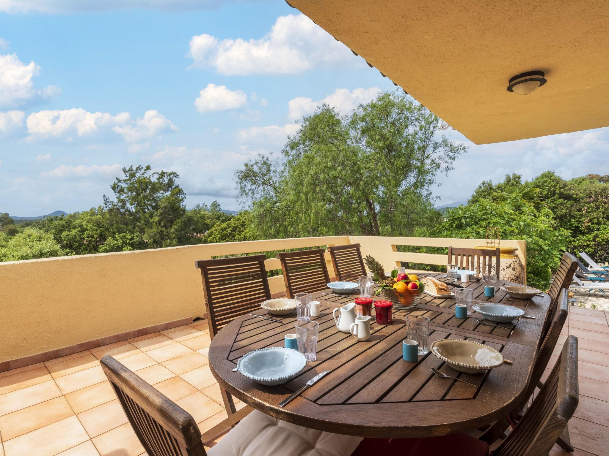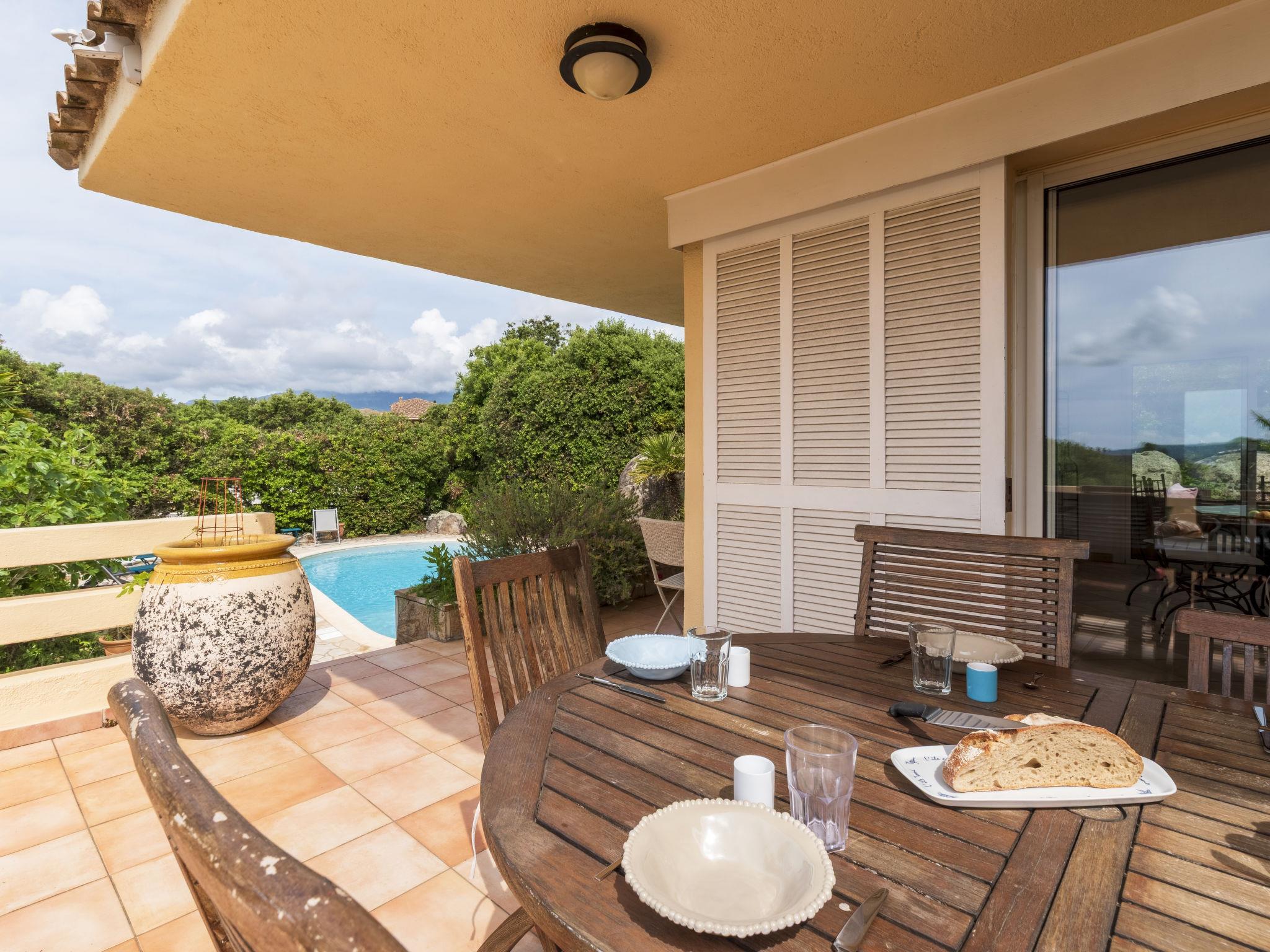 Single-family house, 2 storeys. In the district of Marina Di Fiori, on the outskirts, 3.5 km from the centre of Porto-Vecchio, in the residential district, 600 m from the sea, 600 m from the beach. For shared use: swimming pool angular fenced (25 x 12 m, depth 100 - 250 cm, seasonal availability: 15.May. - 15.Sep.). Shower/WC in the pool area, pool maintenance by the owner/gardener. Private: property (fenced), terraced garden, swimming pool kidney shaped, with privacy (10 x 3 m, depth 140 - 190 cm, seasonal availability: 01.Jun. - 01.Oct.) with alarm system. Boules, pool maintenance by the owner/gardener. In the complex: restaurant. Parking (for 3 cars). Shop 1 km, supermarket 1 km, restaurant 600 m, bus stop "Porto-Vecchio Centre" 700 m, sandy beach "Plage de Cala Verde" 2 km. Sports harbour 3.5 km, golf course (9 hole) 10 km. Nearby attractions: Centre ville de Porto-Vecchio 3.5 km, Plage de Santa Giulia 11 km, Plage de Palombaggia 13 km, Bonifacio 30 km. Well-known lakes can easily be reached: Lac de l'Ospédale 20 km. Hiking paths: Aiguilles de Bavella 48 km. Please note: car recommended. Private mooring, on request.