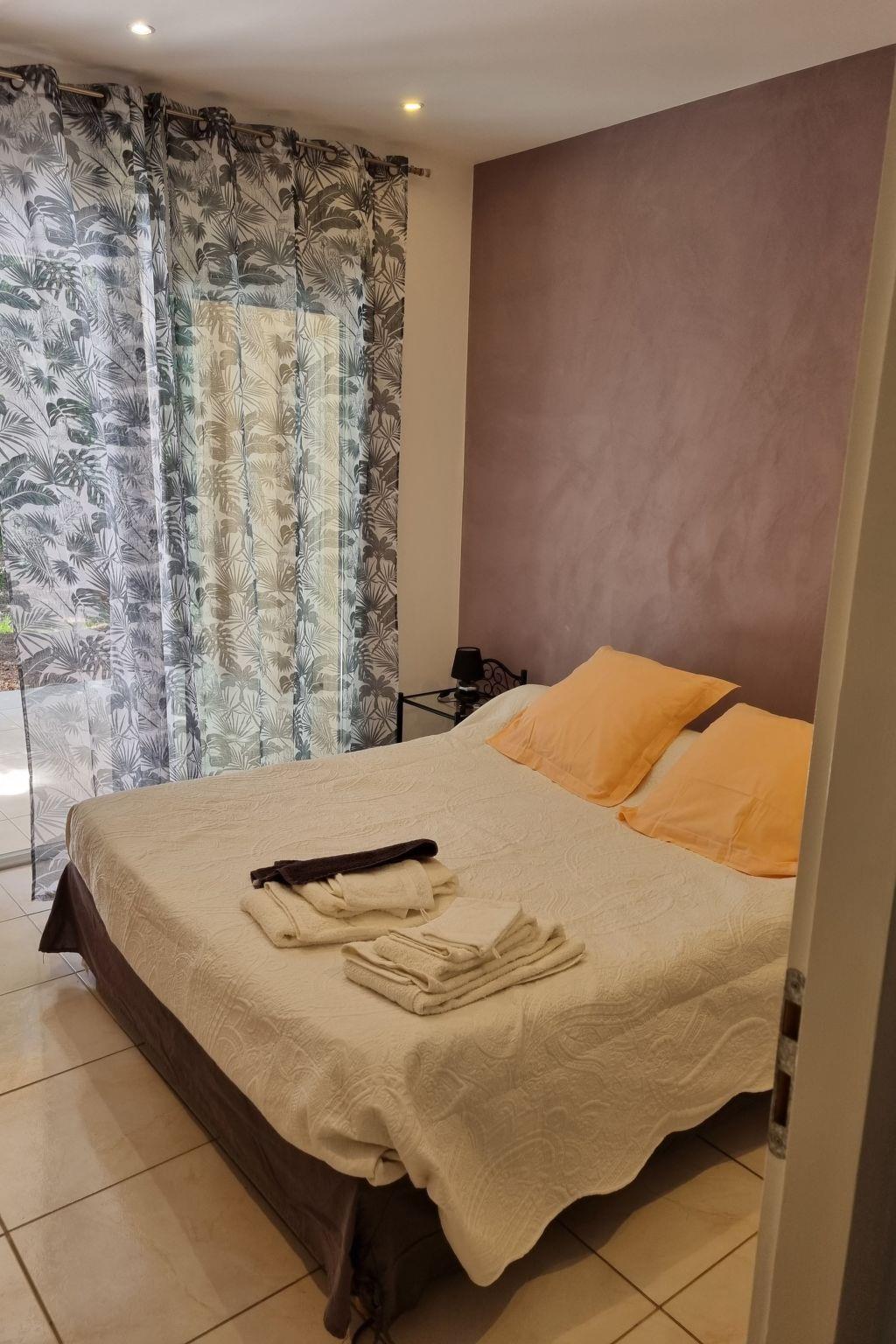 The villa comprises 3 bedrooms (king-size beds), 2 bathrooms, 1 separate WC, 1 very bright living room with large picture windows, 1 fully-equipped kitchen/dining room with bar opening onto the living room and 1 utility room. The bedrooms and living room are equipped with reversible air conditioning (hot and cold).