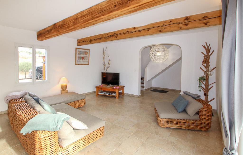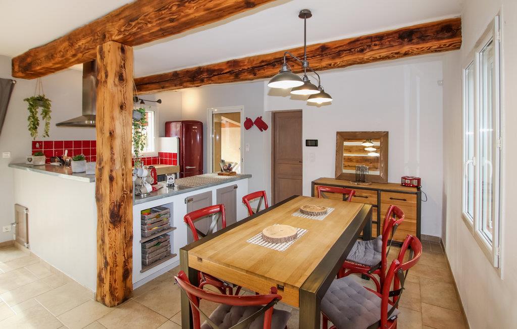 I kan godt glæde jer til en uforglemmelig ferie i denne traditionelle provencalske villa med udsigt over vinmarker og det majestætiske Sainte-Victoire-bjerg. Boligen er både moderne og veludstyret. Møblerne og træbjælkerne i den åbne stue vil nærmest få jer til at føle, at I er ved stranden. I og jeres udvidede familie vil hurtigt føle jer hjemme her. Efter en god nats søvn kan I mødes til morgenmad, og bagefter kan I glæde jer til at benytte den lukkede og private have med pool og terrasse, hvor I kan nyde mange fælles måltider.
