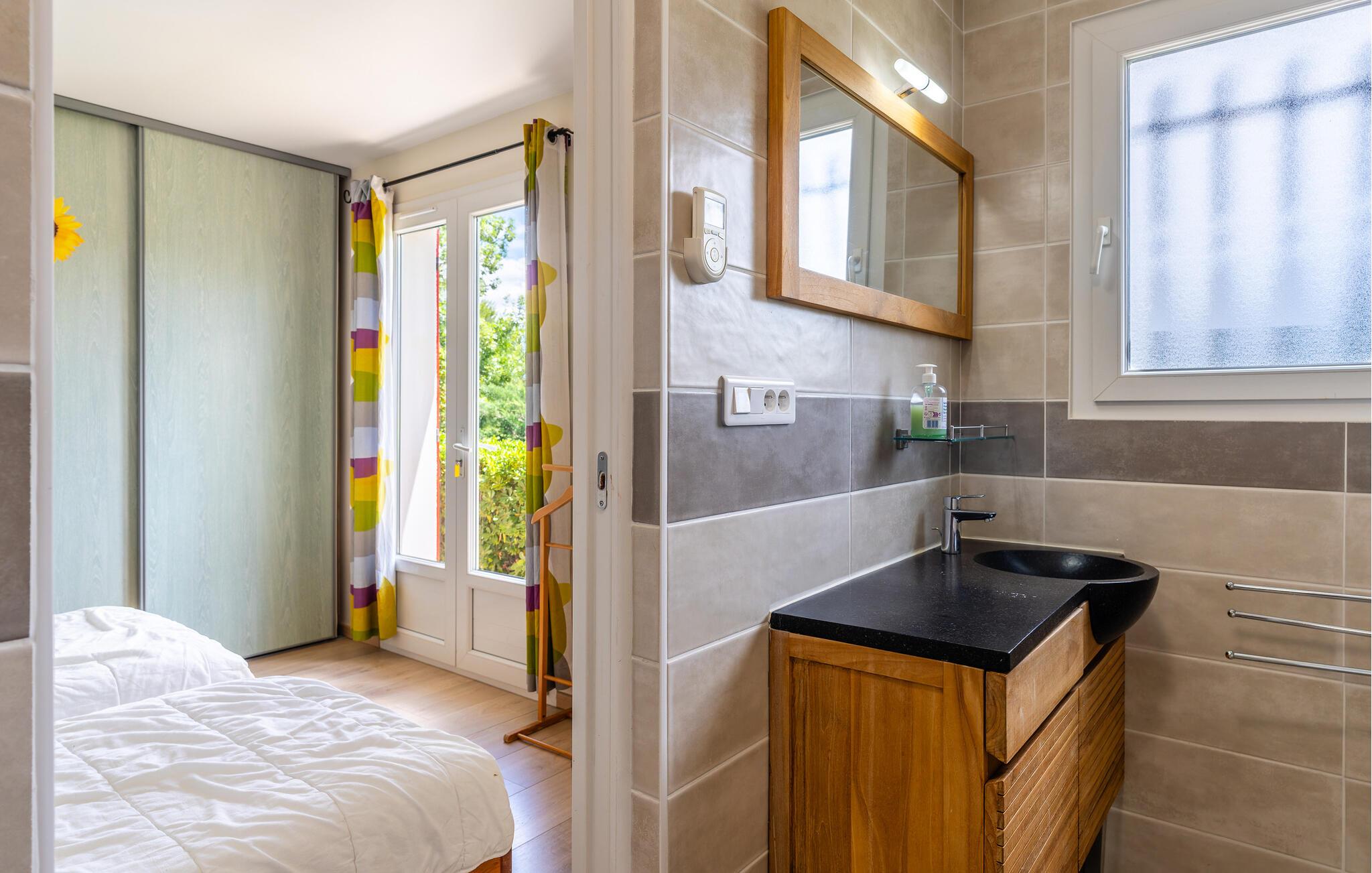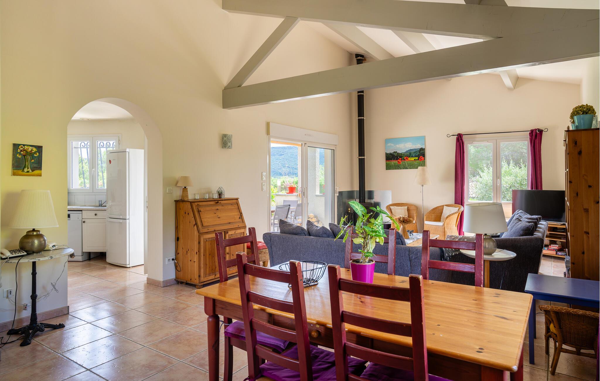 Huset ligger i udkanten af Prades-sur-Vernazobre i Lanquedoc, en halv times kørsel fra Béziers og strandene. Nyd et lækkert lokalt glas vin på den overdækkede terrasse, hvorfra I har en skøn udsigt, tag en forfriskende dukkert i poolen, som kan opvarmes ved forespørgsel og mod betaling.