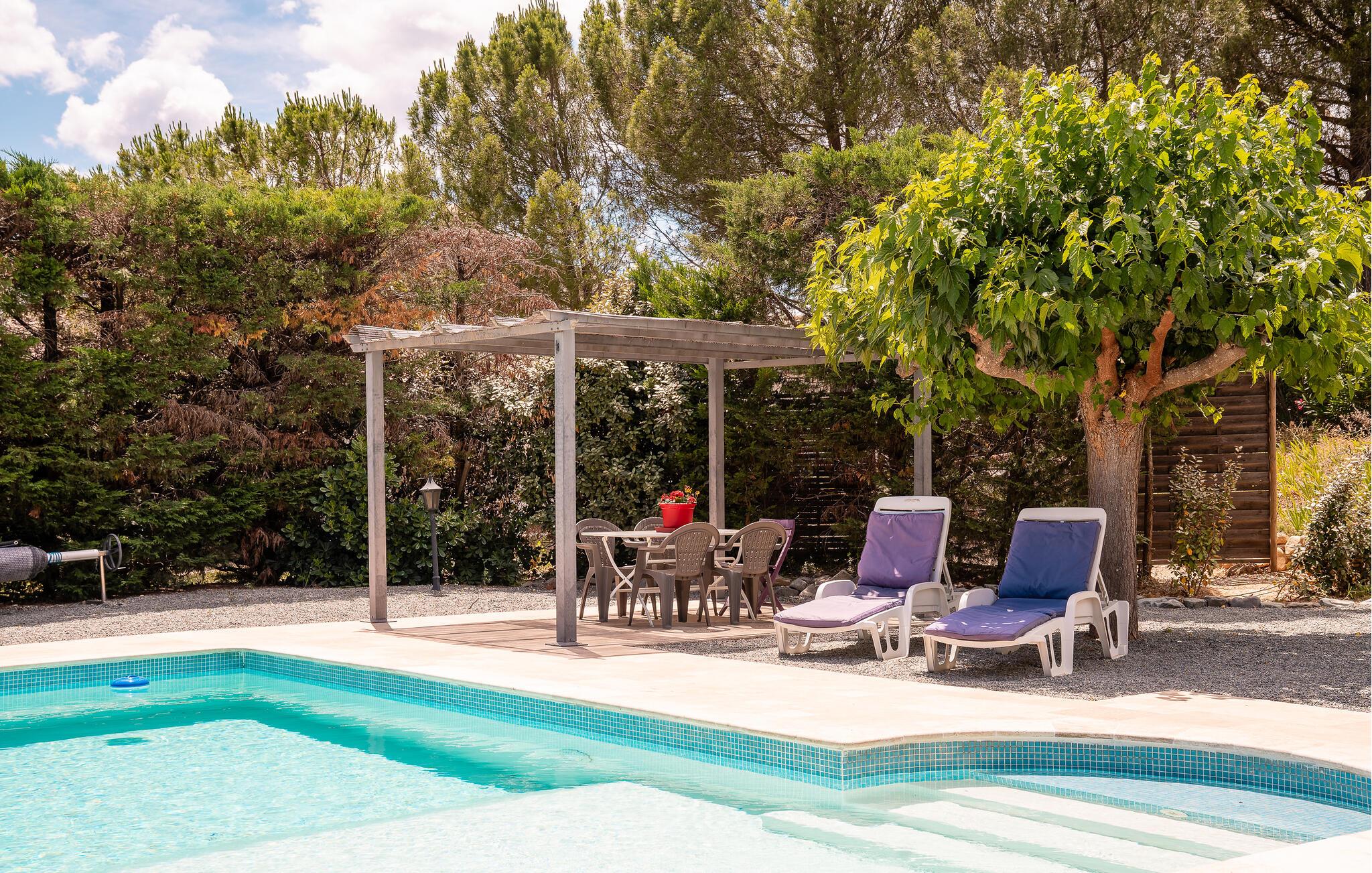 Her får I et skønt feriehus med egen swimmingpool til en dejlig ferie med familie eller venner.