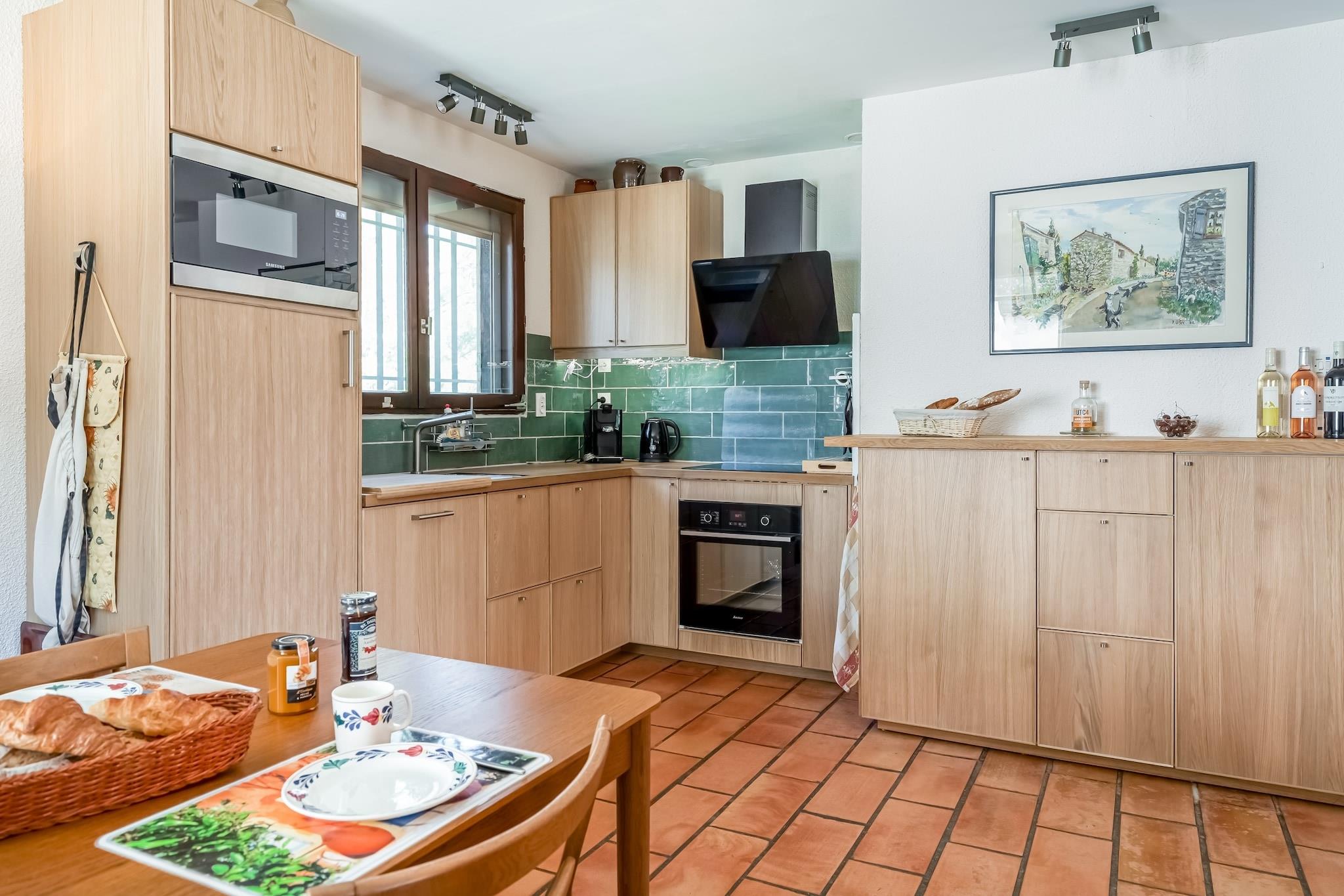 Charmerende villa-retræte med pool og naturskøn udsigt Flygt til denne dejlige 3-værelses villa i Prades-sur-Vernazobre, hvor komfort møder charme på landet. Perfekt til familier eller venner, dette hjem har plads til 6 personer og kan prale af en privat pool med fornyede terrasser, liggestole og panoramaudsigt. Individuelt styret aircondition i alle rum sikrer komfort året rundt, mens det åbne køkken, hyggelige opholdsstue med pejs og udendørs grill gør det nemt at nyde både indendørs og alfresco ophold. Førsteklasses beliggenhed i en malerisk landsby Blot 500 m fra byens centrum kan du slentre til charmerende gader, shoppe på det lokale marked eller afhente det vigtigste i nærliggende butikker. Béziers lufthavn ligger kun 40 km væk, hvilket gør din ankomst stressfri. Villaen inkluderer også et separat gæstestudie med egen indgang, dobbeltseng, badeværelse og sovesofa - perfekt til at besøge venner eller udvidede familie. Rigelig parkering, et smart-tv med Chromecast og opdaterede møbler bidrager til hjemmets moderne bekvemmelighed. Kæledyrsvenligt paradis og spisesteder i nærheden Tag op til tre kæledyr med på eventyret - Prades-sur-Vernazobre byder på naturskønne vandrestier, stier langs floden og endda kæledyrsvenlige terrasser på lokale caféer. Efter en dag med udforskning af vinmarker eller vandreture med din lodne ven, kan du forkæle dig selv med lækkert Languedoc-køkken i nærliggende restauranter eller nyde en solnedgangsvin på din private terrasse.