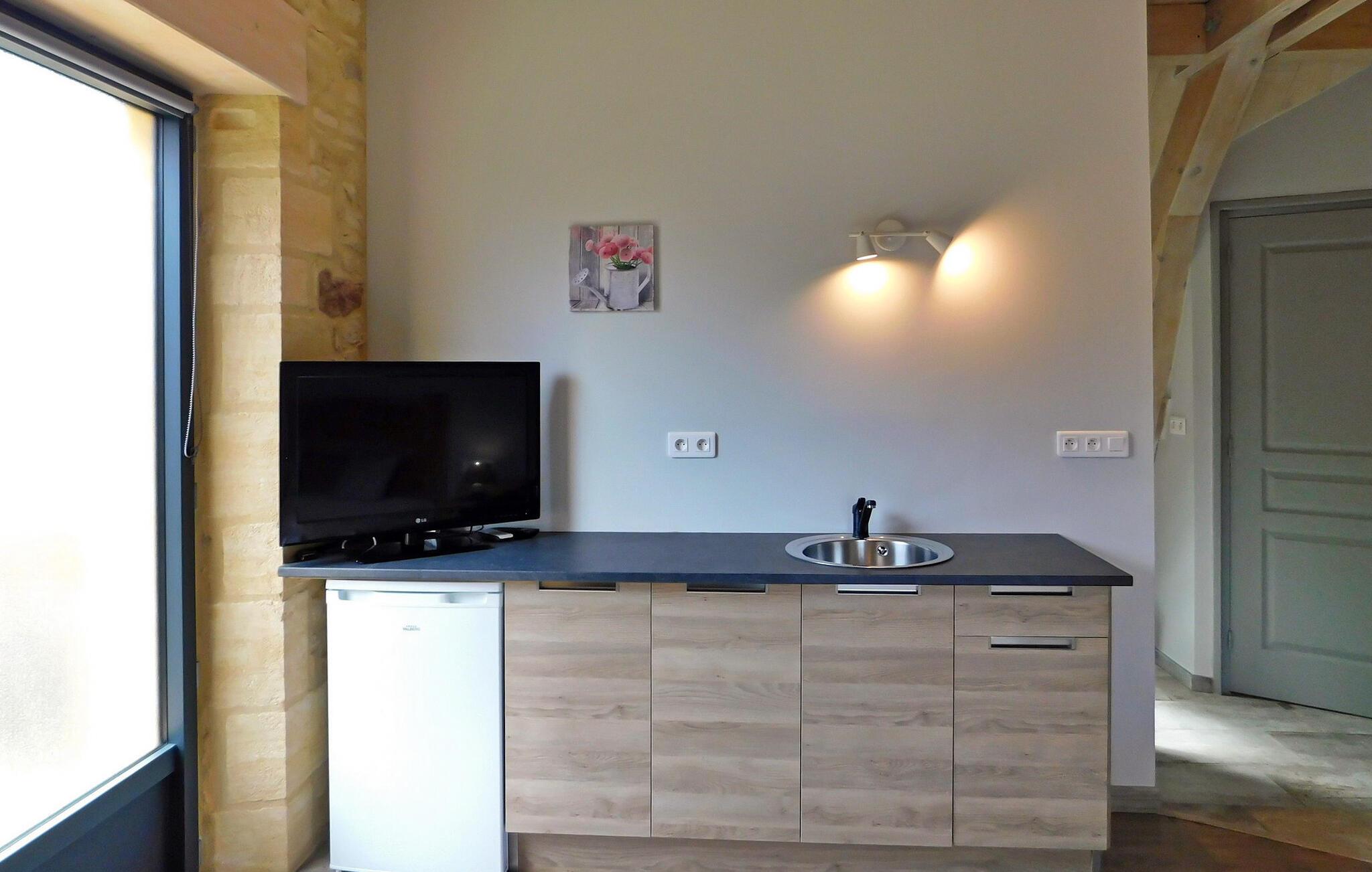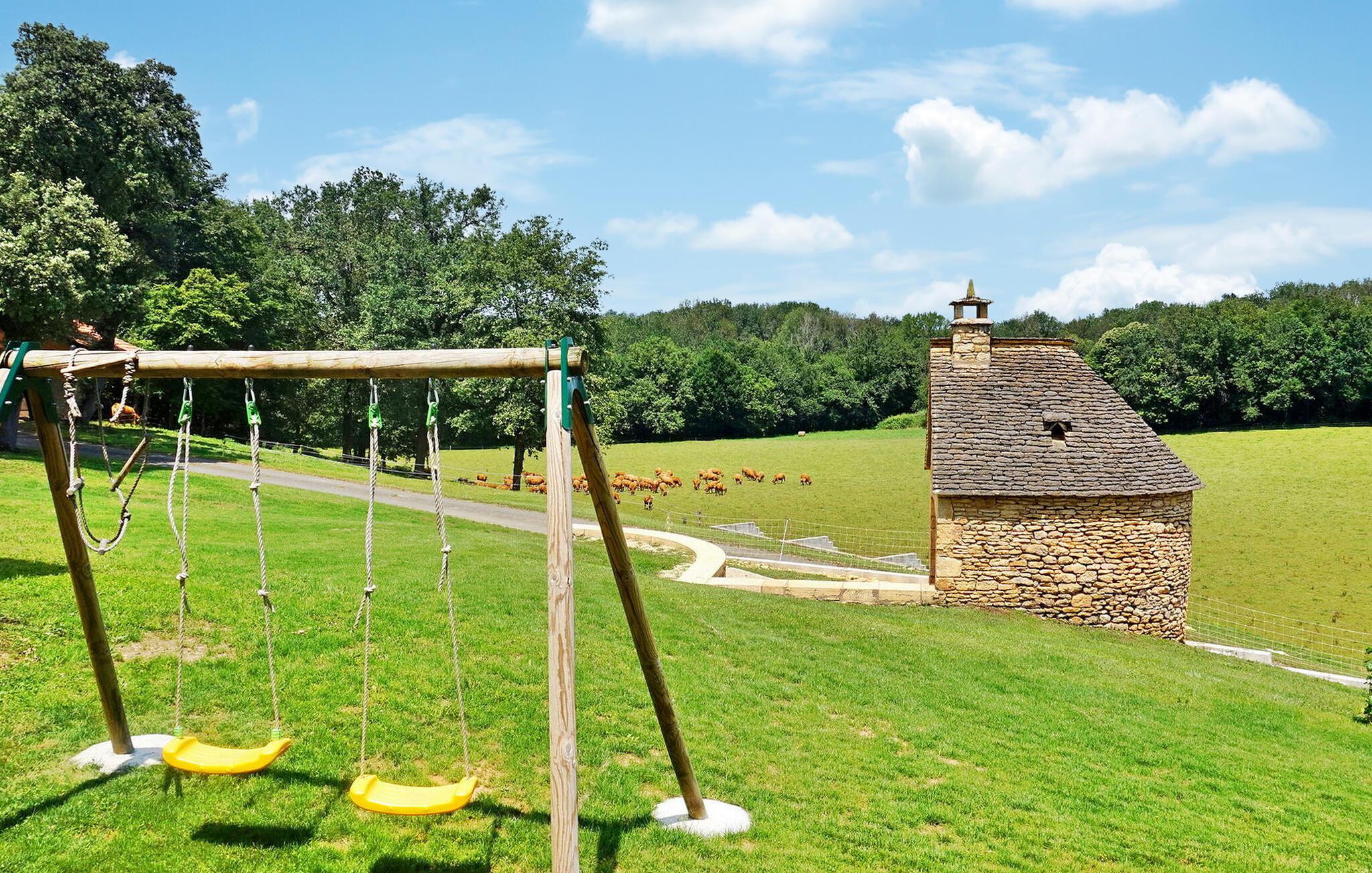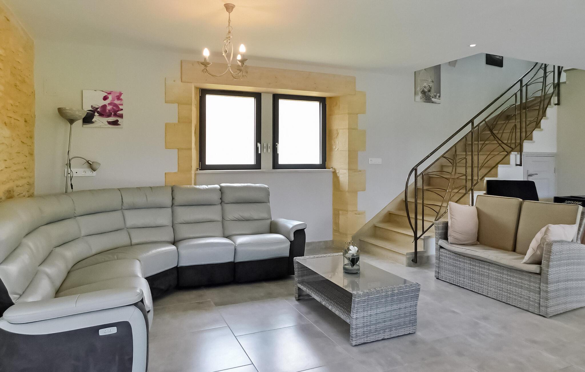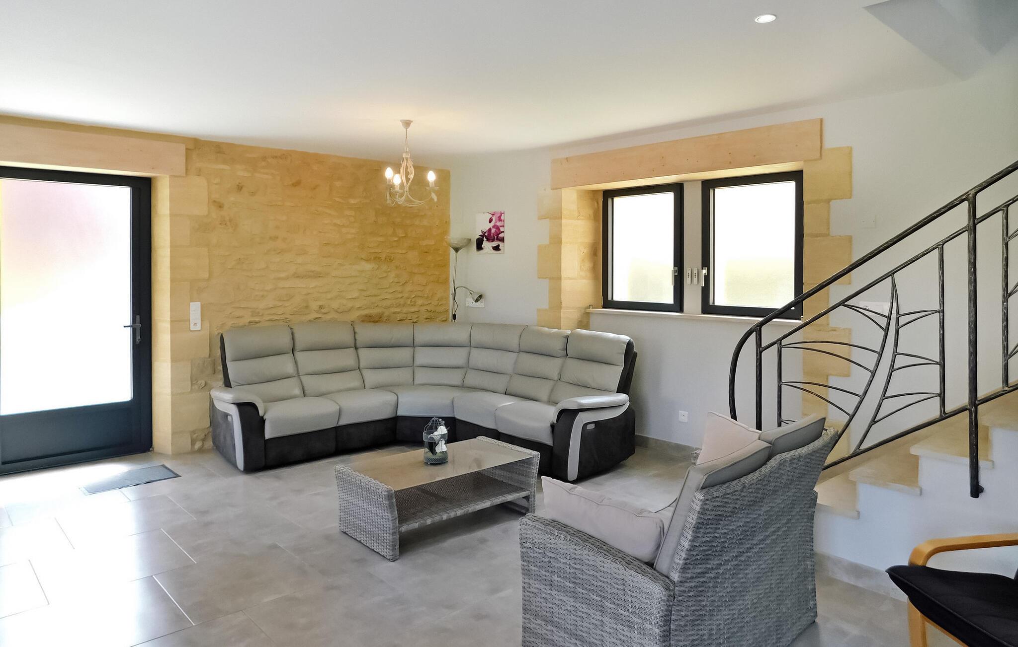 Flygt til et rummeligt landligt hjem i Dordogne, der kan prale af en privat opvarmet swimmingpool. Dette ekspansive hjem byder dig velkommen i et generøst opholdsområde med komfortable siddepladser, en spiseplads og et åbent køkken med essentielle apparater. Et vaskerum tilføjer til bekvemmeligheden sammen med et soveværelse i stueetagen designet til personer med nedsat mobilitet og et privat brusebad. Ovenpå kan du opdage tre smukt indrettede soveværelser, et specielt designet til børn, der hver tilbyder unikke bekvemmeligheder. Nyd den ekspansive fliseterrasse, der støder op til køkkenet, møbleret med udendørs faciliteter og tilbyder panoramaudsigt. Den private opvarmede swimmingpool, indhegnet og sikret i henhold til standarder, bidrager til afslapning og nydelse af dit ophold. Bemærk venligst, at ejerne bor i nærheden, og at haverne ikke er lukkede. Aircondition er tilgængeligt i soveværelserne ovenpå, og babyudstyr er til rådighed for ekstra bekvemmelighed. Oplev landskabets ro og komforten i dette rummelige feriehus, hvilket sikrer et uforglemmeligt tilflugtssted i Dordogne. Ferieboligen er omgivet af smukt grønt landskab og skove. Landsbyer er i nærheden (landmandsmarkeder) og adskillige gå- og vandrestier.