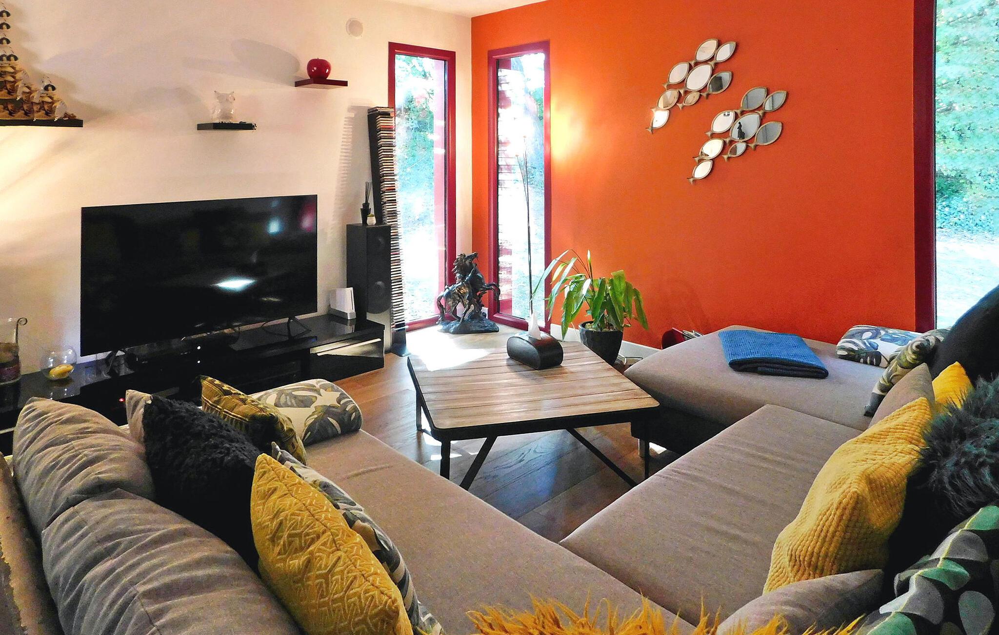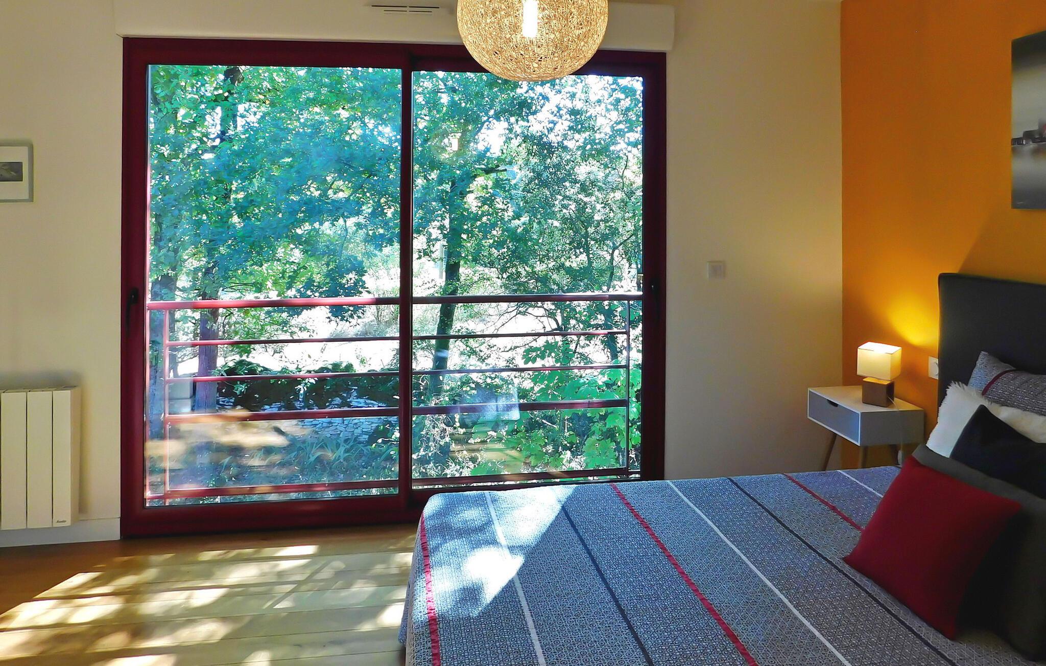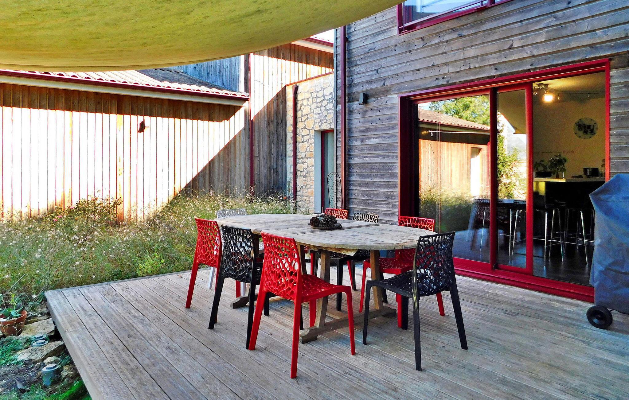 Dette charmerende træferiehus byder på plads på en ejendom sammen med to andre lejemål. Hver lejes privatliv er sikret med adskilte ydre. Ejendommen omfatter et indendørs afslapningsområde med hammam, sauna og jacuzzi samt et fælles fitnessrum/legelokale. Stueetagen består af en åben stue med spise- og køkkenpladser, en kælder, opholdsstue, toilet, et soveværelse med brusebad og et tilstødende soveværelse. Første sal indeholder de resterende soveværelser med tilhørende bruserum. Udendørs faciliteter omfatter en træterrasse med siddepladser og plancha samt en opvarmet swimmingpool (6m x 3,5m) med liggestole og parasol. Fælles faciliteter omfatter wellness-området, fitnessrum, spillelokale og petanquebane. Huset ligger i en lille landsby på en 3,5 hektar stor ejendom på landet omkring 0,5 km fra Prats-de-Carlux og 4 km fra Carlux.