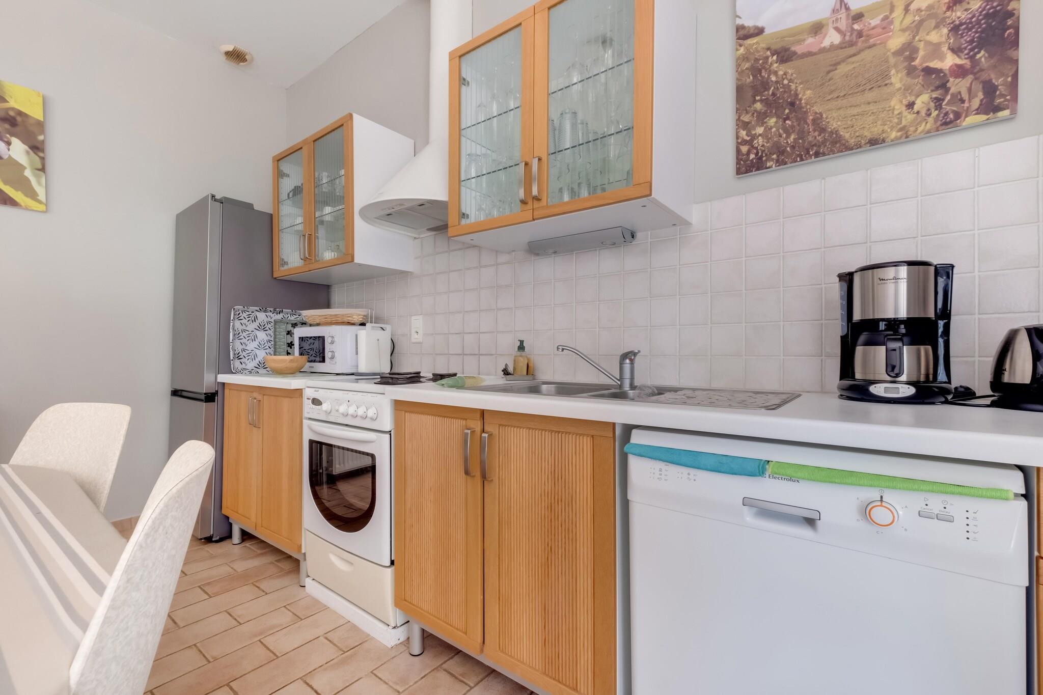 Denne charmerende landsbyejendom tilbyder et fredfyldt tilflugtssted for familier, med en smukt skovklædt og blomstret park på 3000 m² og en privat opvarmet swimmingpool. Et andet hus, der tilhører ejerne, ligger på samme ejendom med sin egen 6000 m² store park og pool. Selvom indgangen er delt, nyder hvert hjem fuldstændig privatliv med separat infrastruktur og udendørs rum, hvilket gør det ideelt til en fredelig familieferie. Beliggende ved landsbyens indgang giver boligen direkte adgang via en privat sti til hjertet af landsbyen. Inden for gåafstand finder du den dejlige restaurant og købmand "Terre Gourmande", perfekt til at nyde det lokale køkken og hente friske regionale produkter. Ejendommen omfatter også en sikker privat parkeringsplads med en elektrisk port, der sikrer både bekvemmelighed og sikkerhed. Indenfor tilbyder den hvælvede forældresuite - tilgængelig udefra kun 4 meter væk - et roligt fristed for par. Et hyggeligt loungeområde og nærliggende pooladgang (6 meter) øger komforten. Boligen er også tilgængelig for gæster med nedsat mobilitet, og ejeren taler flydende tysk, hvilket sikrer et varmt og indbydende ophold.