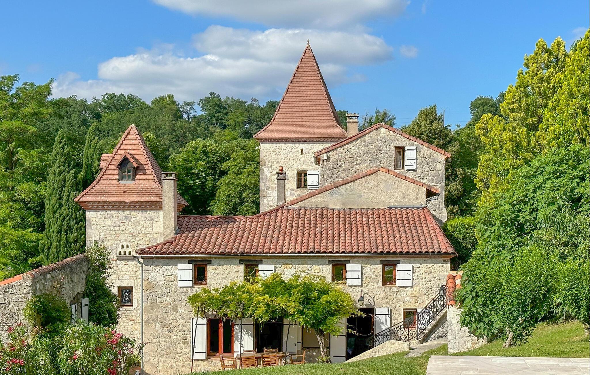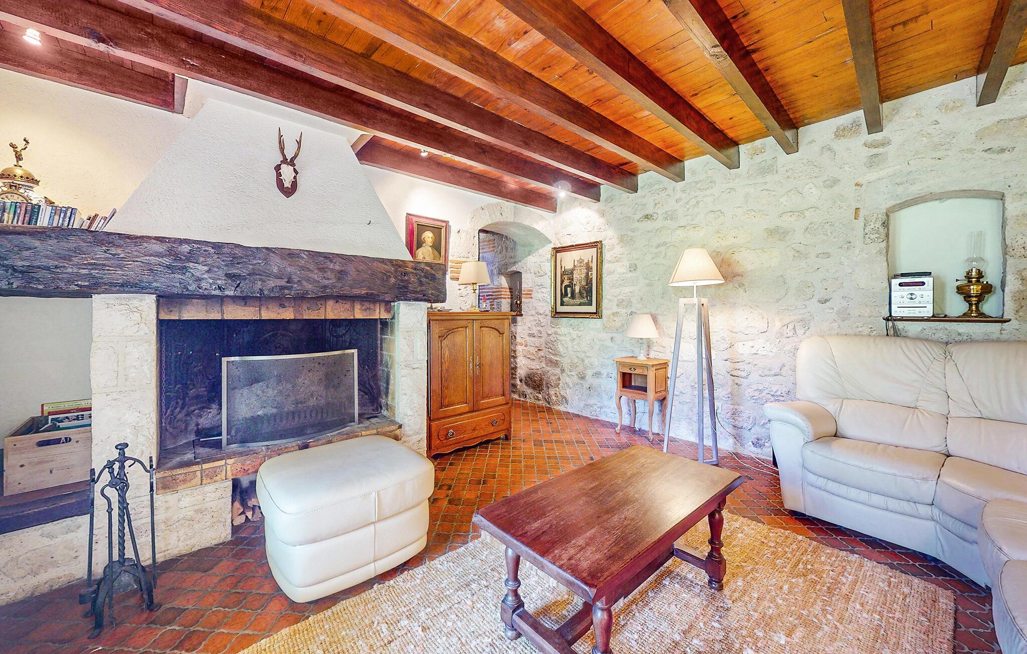 Hvis I er på udkig efter en boligoplevelse lidt ud over det sædvanlige, er dette rustikke stenhus ved Prayssas lige noget for jer. Huset ligger helt fantastisk og har et magisk skue over landskabet, og indvendigt emmer det af charme og autenticitet med fritlagte murværk, gamle træbjælker og finurlige detaljer i udsmykningen, der skaber en særlig varm atmosfære og gør det nemt at slappe af. Nyd måltiderne ved det lange spisebord og rund en skøn feriedag af i siddeområdet med et godt glas vin, mens I lægger planer for de kommende dage.