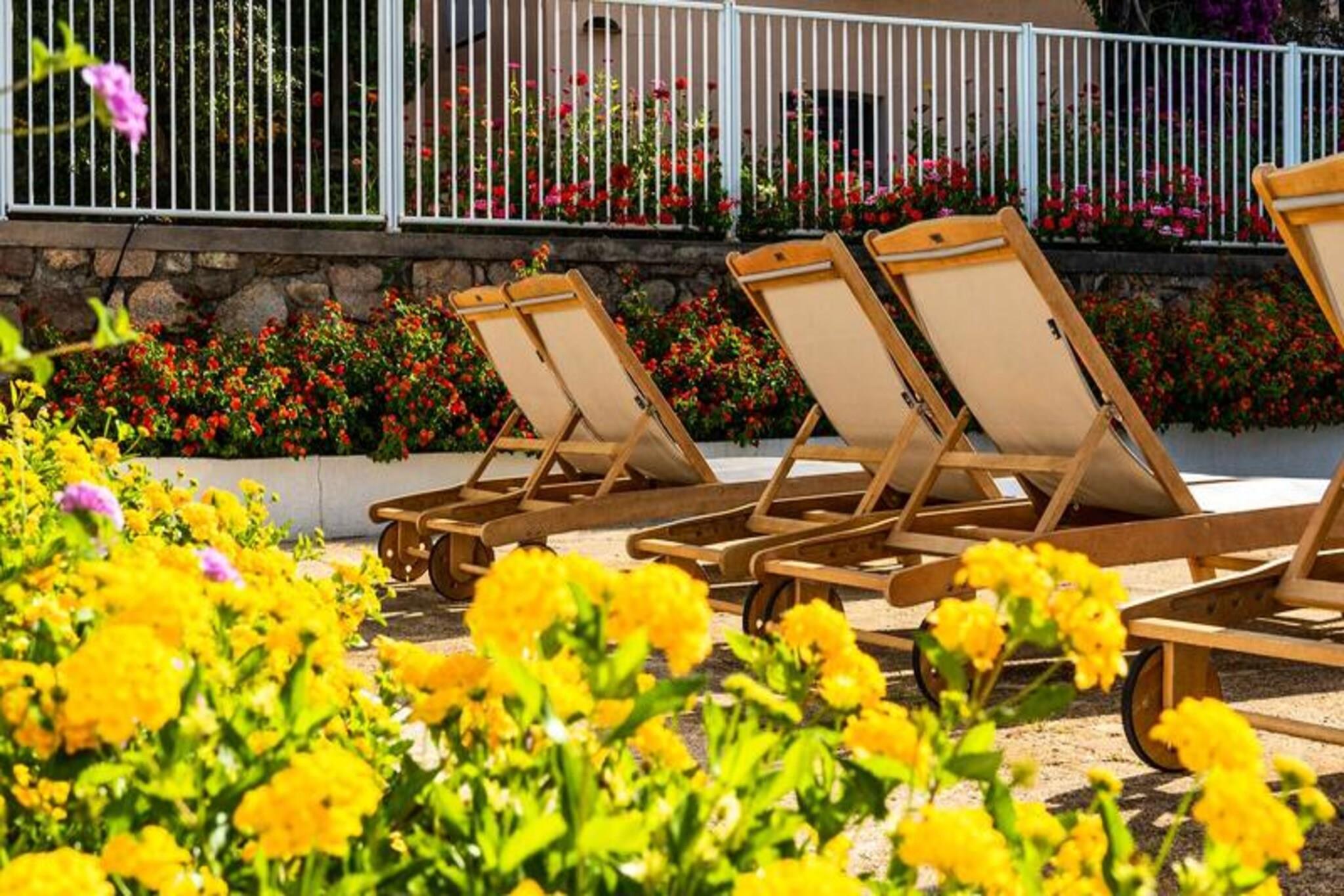 Beliggende i den smukke by Propriano i det sydlige Korsika tilbyder denne charmerende duplex et fredfyldt tilflugtssted med en fantastisk udsigt over både havet og swimmingpoolen. Indkvarteringen er designet til komfort og byder på en stue, hvor en sofa kan omdannes til en seng til to personer, udstyret med en Bultex-madras af høj kvalitet. Boligrummet fører til et hyggeligt, veludstyret køkken. Ovenpå byder det åbne soveværelse på en modulseng, der kan omdannes til to enkeltsenge, og det separate badeværelse giver ekstra privatliv og bekvemmelighed. Aircondition sikrer en behagelig atmosfære, mens gratis Wi-Fi og parkering er til rådighed. Denne ejendom er ideelt beliggende til at nyde både ro og tilgængelighed. Det ligger kun 600 meter fra byens centrum, hvor du kan udforske lokale butikker, og 1 km fra smukke strande med forskellige vandaktiviteter. For dem, der elsker sport, ligger ejendommen også 250 meter fra et sportskompleks og kommunale tennisbaner. To supermarkeder er kun 1 km væk, hvilket gør det nemt at fylde op med det væsentlige under dit ophold. Inde i duplexen finder du et fuldt udstyret køkken, en vaskemaskine for ekstra bekvemmelighed og sengetøj til dit ophold. De rolige omgivelser og tæt på lokale attraktioner gør det til et fremragende valg for både familie- og romantiske ferier. Kæledyr er velkomne mod et lille ekstra gebyr, hvilket sikrer, at dine lodne venner kan deltage i feriehyggen.