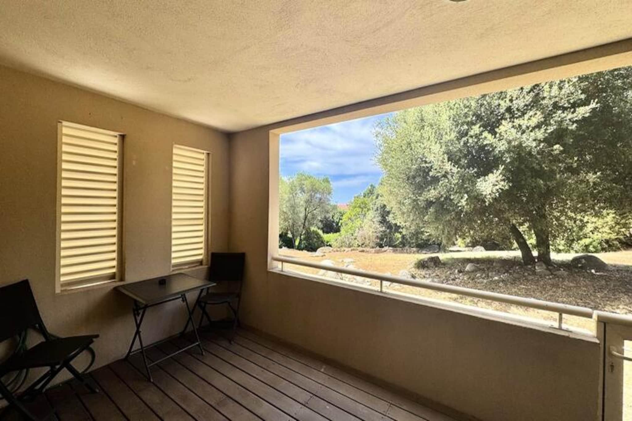 Midt i Proprianos fredfyldte charme tilbyder denne dejlige lejlighed med et soveværelse et roligt tilflugtssted omgivet af frodige haver og middelhavsstemning. Perfekt beliggende i et roligt kvarter, men kun en kort gåtur fra de vigtigste faciliteter, inviterer denne ejendom dig til at opleve det bedste af korsikansk livsstil. Forestil dig at nippe til din morgenkaffe på den rummelige terrasse, sole dig i den blide havbrise og nyde den fredelige atmosfære, der definerer disse idylliske omgivelser. Uanset om du søger afslapning eller eventyr, er denne lejlighed din port til begge dele. \n\nTræd indenfor for at opdage en lys og luftig stue, der problemfrit forbinder sig med den udendørs terrasse og skaber en harmonisk blanding af indendørs og udendørs ophold. Terrassen, komplet med spisemøbler og liggestole, har udsigt over en frodig have, der lover øjeblikke med ro. Det fuldt udstyrede køkken er ideelt til at tilberede friske, lokale delikatesser, mens soveværelset har en luksuriøs queensize-seng og direkte adgang til terrassen, hvilket sikrer afslappende nætter og forfriskende morgener. Et moderne brusebad og separat toilet bidrager til bekvemmeligheden, suppleret af aircondition og højhastighedsinternet for et behageligt ophold. \n\nBeliggende kun 200 meter fra et travlt indkøbscenter med et Auchan-supermarked, restauranter og forskellige tjenester, er alt hvad du behøver inden for rækkevidde. Proprianos centrum ligger blot 5 minutters kørsel væk eller en behagelig gåtur væk via en naturskøn genvej. Udforsk de nærliggende strande, nyd korsikansk mad, eller begiv dig ud i øens barske landskaber for uforglemmelige eventyr. \n\nMed sengelinned inkluderet, privat parkering og slutrengøring sikrer denne lejlighed en stressfri ferie. Uanset om du er her for at slappe af eller udforske, tilbyder denne ejendom den perfekte balance mellem komfort, bekvemmelighed og korsikansk charme.