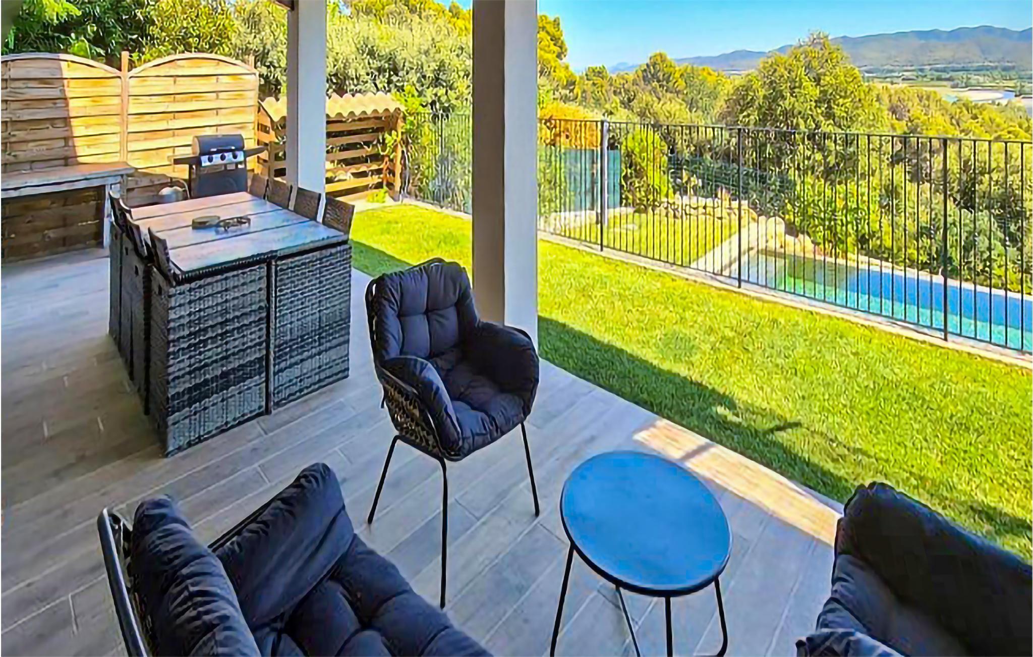 Herfra har I adgang til den smukke terrasse, hvor I kan nyde den vidunderlige udsigt over landskabet, hvad enten I slapper af i havemøblerne eller nyder et dyp i infinitypoolen. Rund herlige feredage af her med lækker grillmad og et godt glas vin. Det skorter heller ikke på badesjov i poolen, hvor børnene kan boltre sig, mens I nyder solen på terrassen. Der er også en dejlig legeplads, hvor børnene kan more sig og brænde krudt af.