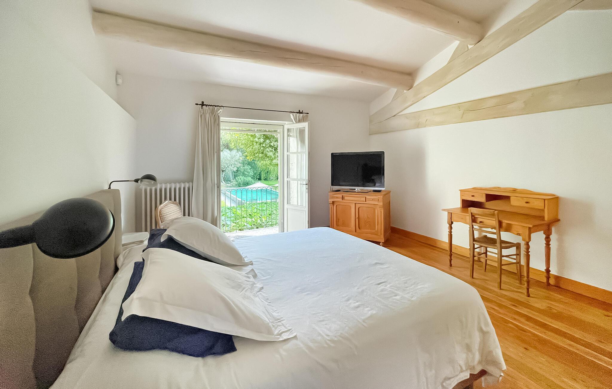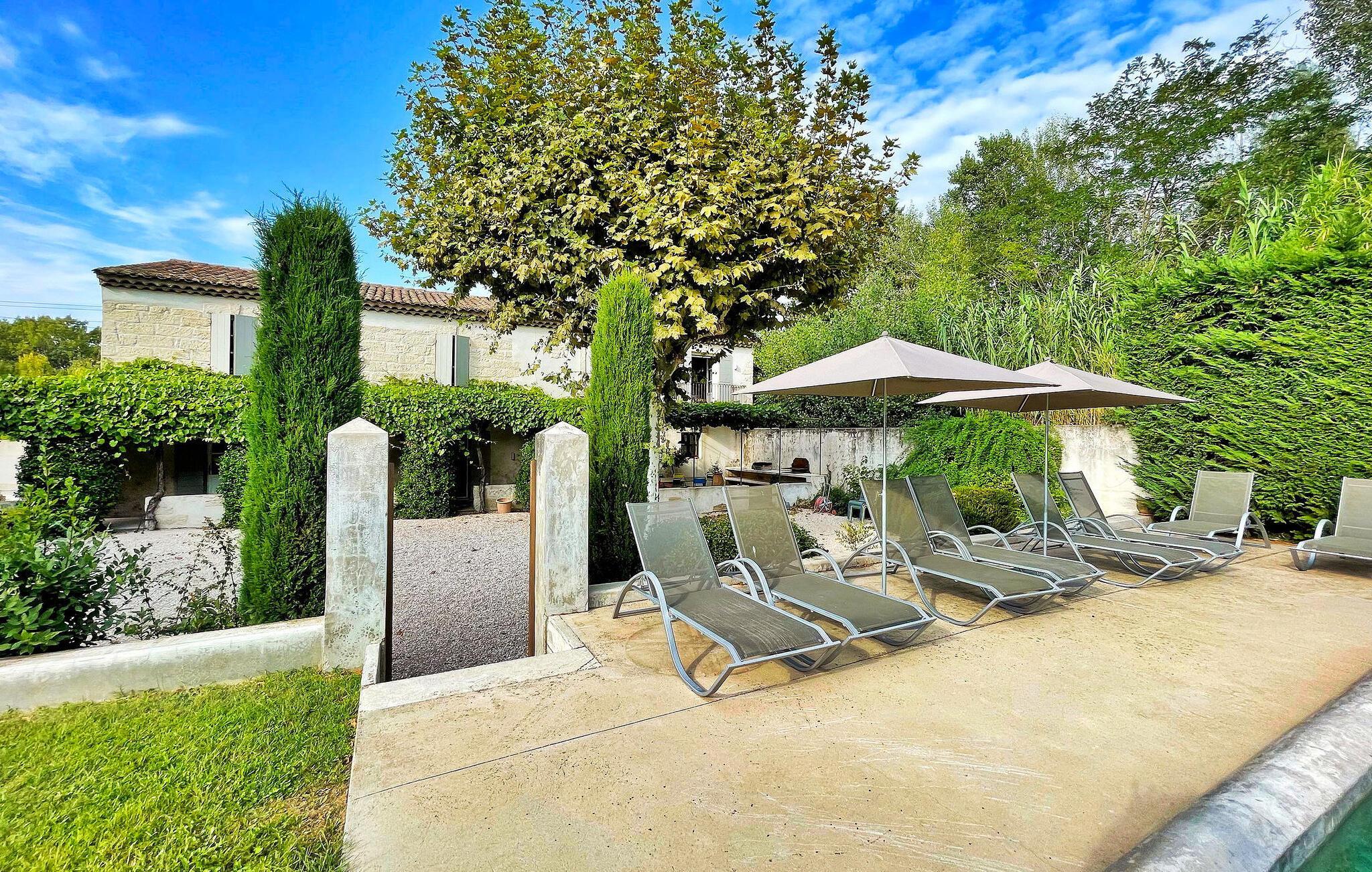 Denne bondegård ligger mellem middelalderbyerne Avignon og Villeneuve-lès-Avignon og tilbyder et rummeligt, elegant indrettet tilflugtssted. Stueetagen har opholdsstue, spisestue, fuldt udstyret køkken, bryggers og separat toilet. Ovenpå finder du de klimatiserede soveværelser og badeværelser. Udenfor sikrer en stor have med en elektrisk port, en skyggefuld terrasse og en 15m x 5m privat pool med liggestole og parasoller et luksuriøst ophold i Provence. Stuehuset ligger i Pujaut, omkring 4 km fra de første butikker i landsbyen (bageri, minimarked, læge, apotek, restauranter osv.). For mere shopping anbefaler vi Les Angles (5 km) eller Avignon (10 km). Kom og nyd din Provence-ferie i en bondegård med swimmingpool.