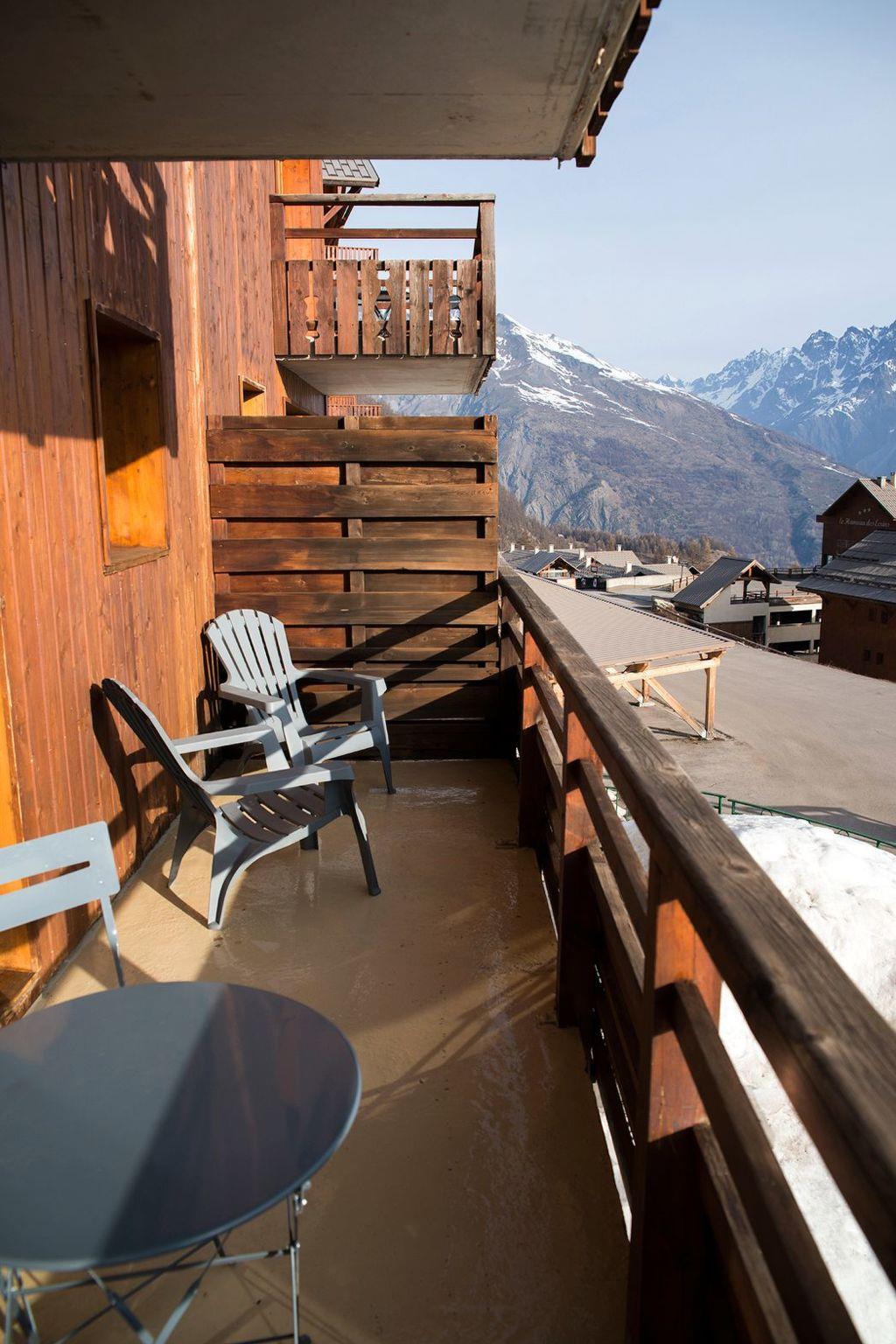 Bright stay, oriented North/East as well as the large balcony with breathtaking views of the Vallouise valley and the mountain, equipped with terrace furniture (table, chairs and recliners), where you can have your coffee or lunch.