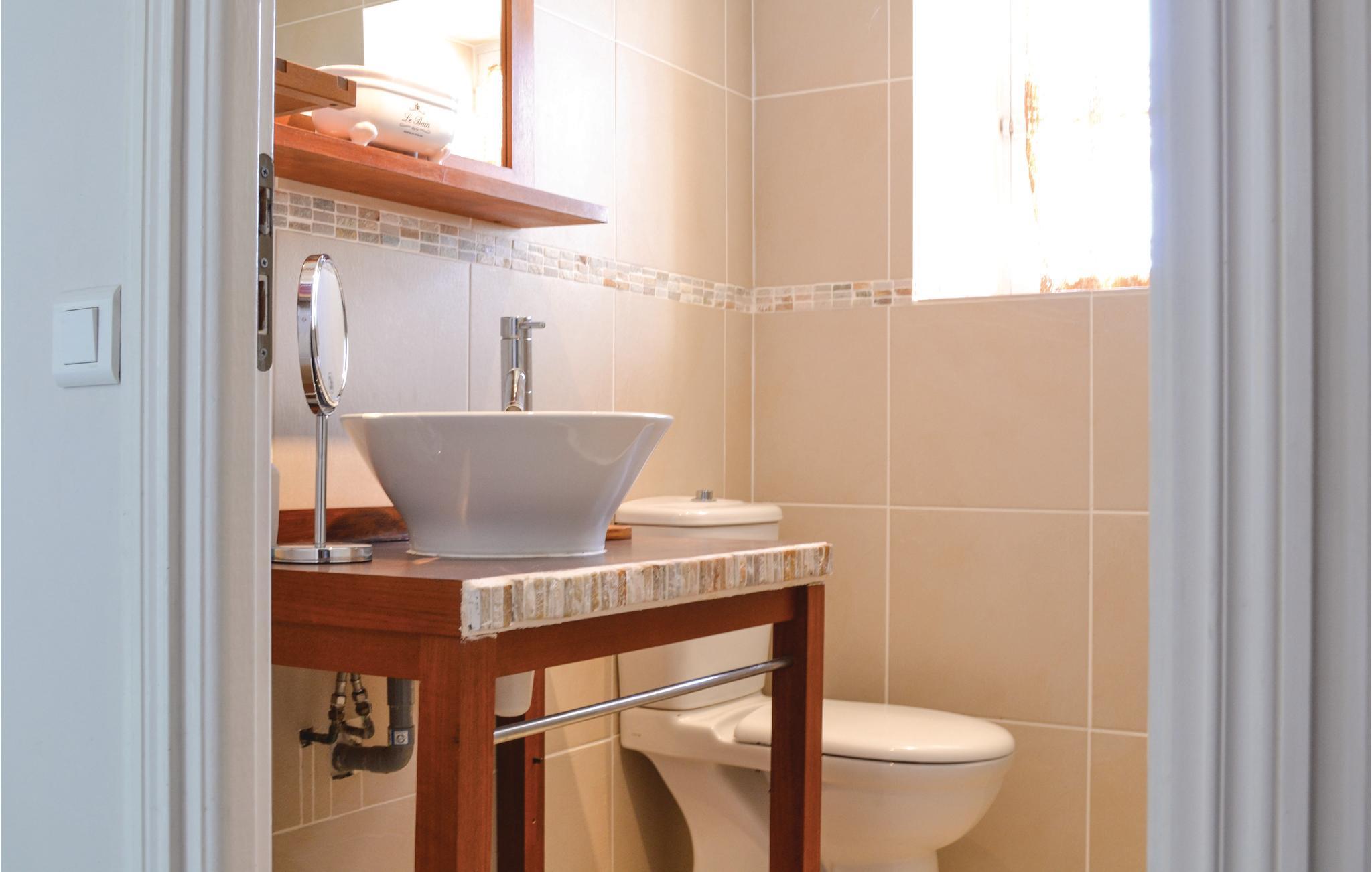 Et af badeværelserne har et badekar med whirlpoolfunktion, og poolen kan varmes op efter aftale med ejeren.