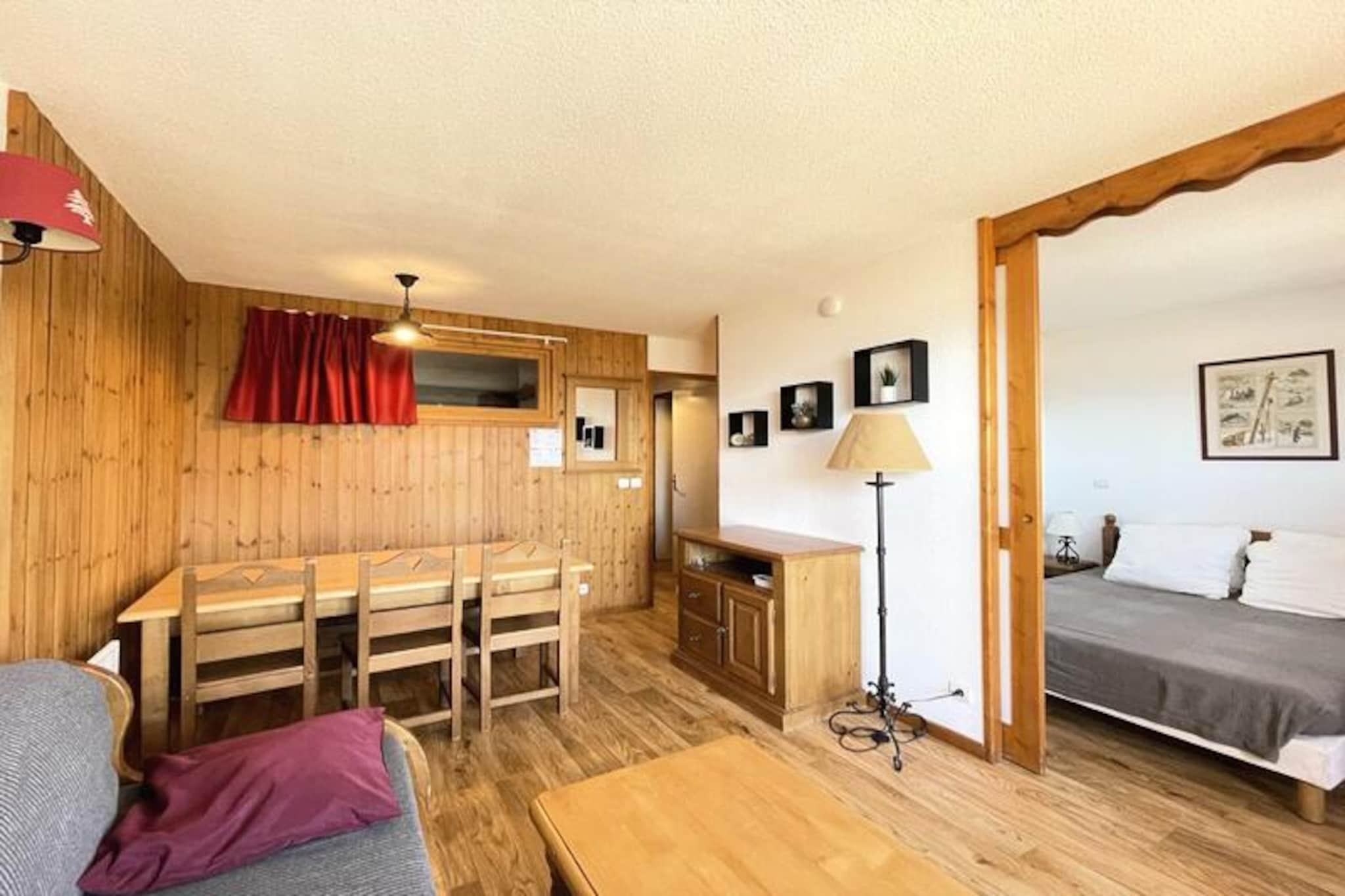 Højt over de fredfyldte skråninger i Puy Saint Vincent 1800 tilbyder denne charmerende lejlighed en perfekt blanding af komfort og bekvemmelighed til din alpine ferie. Forestil dig at vågne op til frisk bjergluft og træde direkte ud på skiløjperne fra din bolig, hvor hver eneste detalje er designet til at forbedre din ferieoplevelse. Uanset om du søger eventyr eller afslapning, er dette hyggelige tilflugtssted ideelt for både familier og venner. \n\nLejligheden er omhyggeligt møbleret til at rumme op til seks gæster og har et veludstyret køkken med moderne apparater, herunder mikrobølgeovn, opvaskemaskine og raclette-grill til autentiske kulinariske øjeblikke. Stuen inviterer dig til at slappe af med sin udtrækssovesofa, fladskærms-tv og en balkon med en fantastisk udsigt over de omkringliggende tinder. Med et soveværelse, et soveværelse i kahytten og et badeværelse med håndklædetørrer udstråler hvert hjørne af dette rum varme og praktisk anvendelighed. \n\nBeliggende i den prestigefyldte La Dame Blanche-residens finder du alt, hvad du behøver, lige ved hånden. En opvarmet udendørs pool (åben om sommeren), en sauna og vigtige faciliteter som et bageri, en restaurant og en skiudlejningsbutik ligger kun få skridt væk. Gratis Wi-Fi holder dig forbundet, mens valgfrie tjenester som leje af sengelinned og håndklæder sikrer et problemfrit ophold. \n\nUanset om du glider ned ad uberørte pister om vinteren eller udforsker frodige alpine stier om sommeren, er denne lejlighed din port til uforglemmelige øjeblikke i de franske alper. Book dit ophold nu og skab minder, der vil vare hele livet.