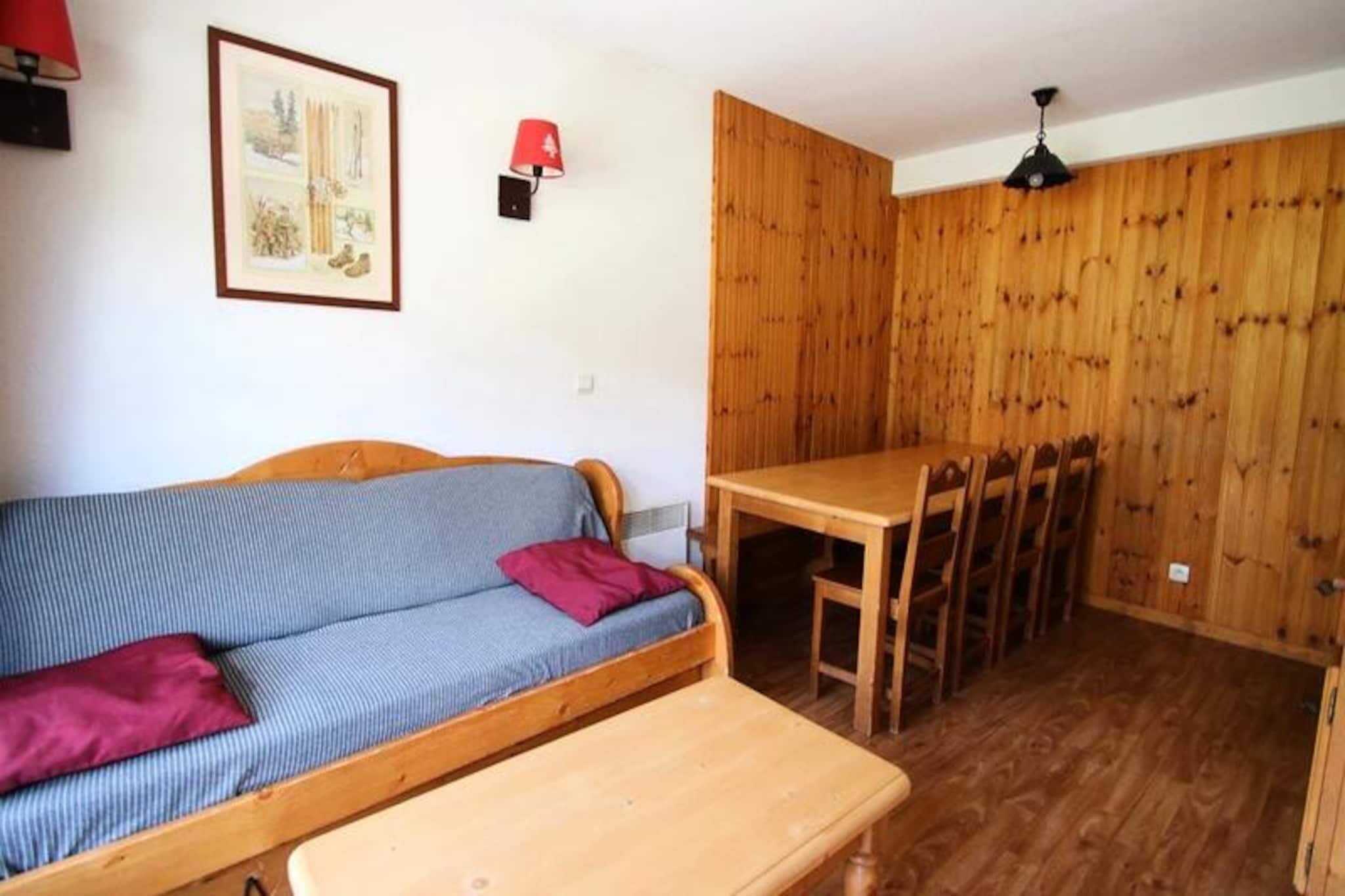I hjertet af de maleriske franske alper tilbyder denne charmerende lejlighed med to soveværelser et dejligt tilflugtssted for familier og grupper på op til otte personer. Beliggende i den øvre del af Puy Saint Vincent 1800 kombinerer residensen La Dame Blanche moderne komfort med direkte adgang til skiløjperne, hvilket gør den til et ideelt valg for både vintersportsentusiaster og naturelskere. Forestil dig at vågne op til en betagende udsigt over bjergene, træde ud på din private balkon for at nyde den friske alpeluft og gå direkte ind i en dag med eventyr. Uanset om du er her for at stå på ski eller bare for at slappe af, lover denne ejendom et uforglemmeligt ophold. \n\nIndvendigt er lejligheden omhyggeligt designet for at sikre maksimal komfort og bekvemmelighed. Det fuldt udstyrede køkken inkluderer mikrobølgeovn, opvaskemaskine, keramisk kogeplade, køleskab, brødrister, elkedel og kaffemaskine, perfekt til at tilberede solide måltider efter en dag på pisterne. Stuen har en udtrækssovesofa, et spisebord og et fladskærms-tv, hvilket skaber et hyggeligt rum til afslapning. Sovepladserne omfatter et soveværelse med dobbeltseng, en alkove med køjesenge og et soveværelse ovenpå med to enkeltsenge og et tilstødende brusebad. Yderligere faciliteter såsom gratis WiFi og separat badeværelse og toilet bidrager til dit opholds bekvemmelighed.\n\nSelve boligen kan prale af fantastiske faciliteter, herunder en opvarmet udendørs swimmingpool (åben om sommeren), en sauna, der kan reserveres, og et møntvaskeri. Ved foden af ??boligen finder du en restaurant, snackbar, bageri og dagligvarebutik samt en skiudlejningsbutik for ekstra bekvemmelighed. For dem, der ankommer i bil, er der mulighed for at leje overdækket parkering.\n\nUanset om du søger spændende skieventyr eller fredelige sommervandreture, placerer denne lejlighed dig i det perfekte sted til at udforske de franske alpers skønhed. Med sin blanding af komfort, bekvemmelighed og fantastiske omgivelser er La Dame Blanche din indgang til en virkelig mindeværdig alpin flugt.