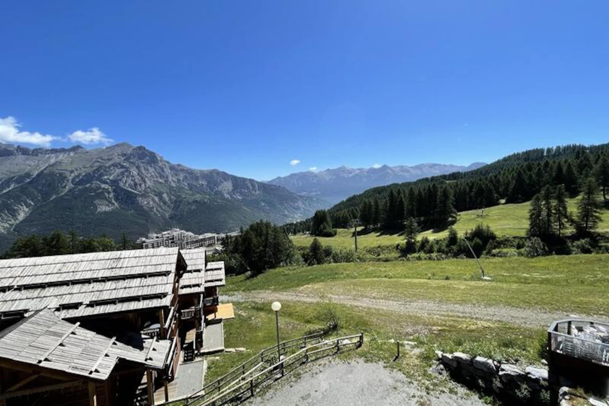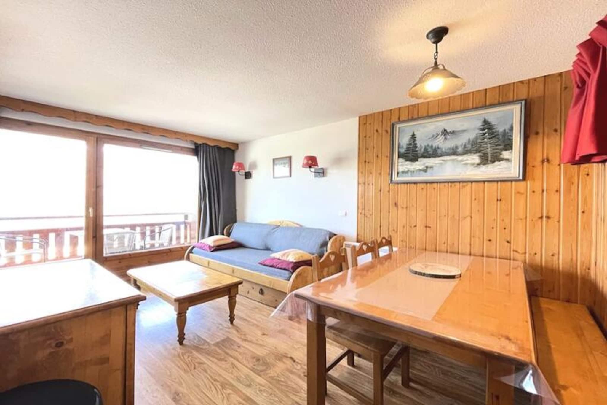 Højt over de maleriske skråninger i Puy Saint Vincent 1800 tilbyder denne charmerende lejlighed et hyggeligt tilflugtssted for bjergelskere, der søger både eventyr og afslapning. Med betagende udsigt over alperne og direkte adgang til skiløjperne er hvert øjeblik her fyldt med magien fra de franske alper. Uanset om du nipper til kaffe på balkonen eller gør dig klar til en dag på pisterne, inviterer denne bolig dig til at omfavne den fredfyldte skønhed i dine omgivelser. \n\nLejligheden er designet med fokus på komfort og praktisk anvendelighed og har plads til 4-6 gæster fordelt på sine gennemtænkte områder. Stuen har en udtrækssovesofa, et spisebord og et fladskærms-tv, mens balkonen er møbleret til at nyde den friske bjergluft. Køkkenet er fuldt udstyret med moderne apparater, herunder mikrobølgeovn/grill, opvaskemaskine, keramisk kogeplade og kaffemaskiner. Sovepladserne omfatter et soveværelse med dobbeltseng, et soveværelse med to enkeltsenge og en sovesofa i opholdsstuen, alle med bløde dyner og puder. Et badeværelse med håndklædetørrer og et separat toilet fuldender planløsningen og sikrer bekvemmelighed for alle gæster.\n\nSelve boligen kan prale af exceptionelle faciliteter, herunder en opvarmet udendørs pool (åben om sommeren), en sauna og en skiudlejningsbutik. For foden af ??bygningen finder du en restaurant, snackbar og bageri, der tilbyder lækre godbidder og basale dagligvarer. For ekstra bekvemmelighed er der et møntvaskeri på stedet. Gratis WiFi sikrer, at du forbliver forbundet, mens valgfrie tjenester som leje af linned og håndklæder gør dit ophold problemfrit.\n\nDenne lejlighed har en perfekt beliggenhed til at udforske regionen og er din indgang til spændende skieventyr om vinteren og naturskønne vandreture om sommeren. Fra de majestætiske tinder til de charmerende lokale faciliteter er hver eneste detalje udtænkt for at tilbyde en uforglemmelig alpin flugt. Uanset om du er her for pisterne eller roen, lover denne bolig en ferie fyldt med komfort og glæde.